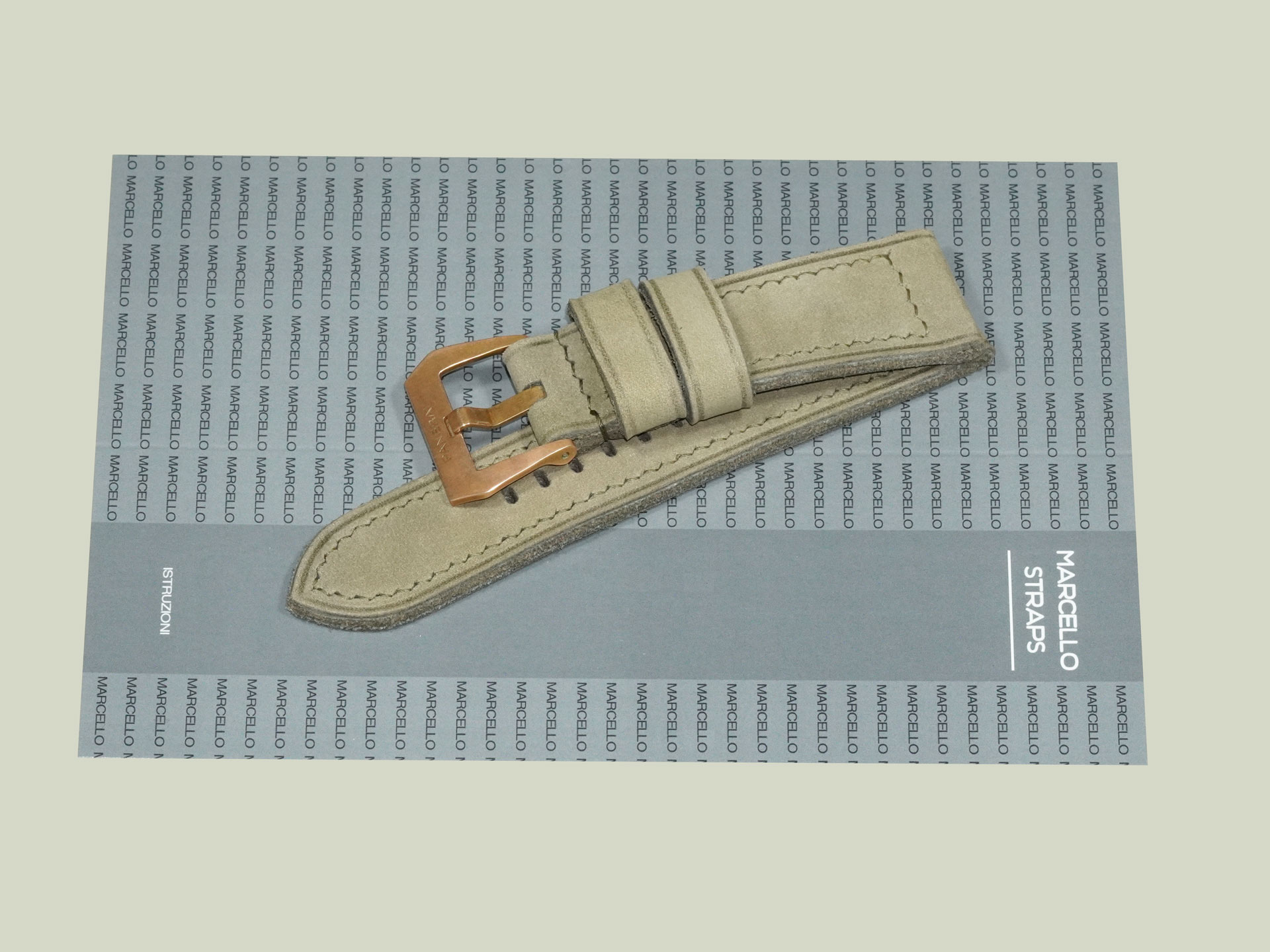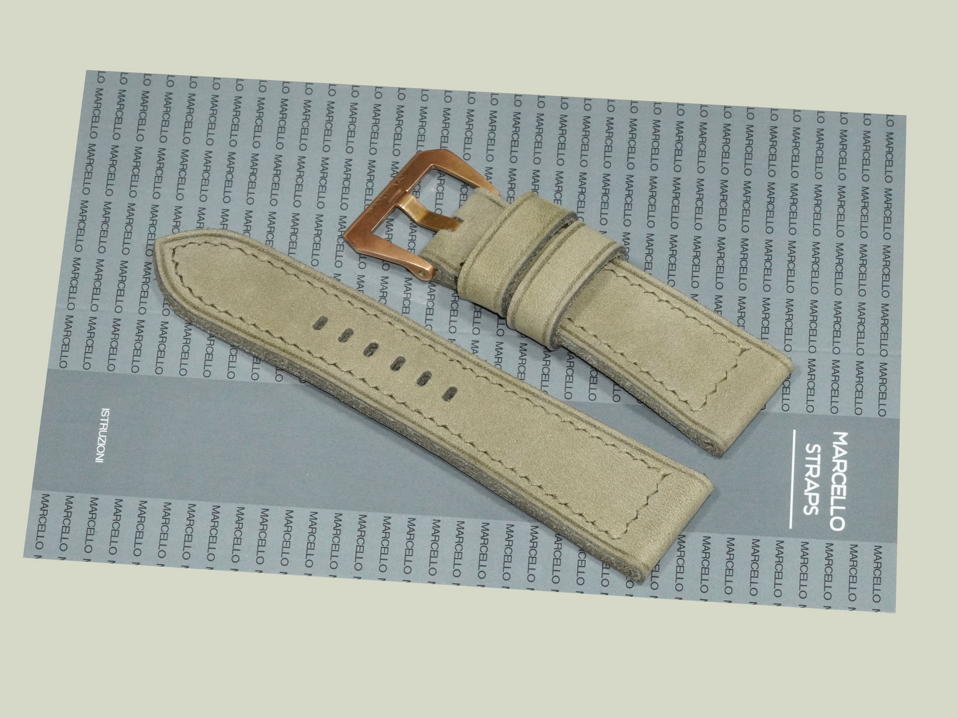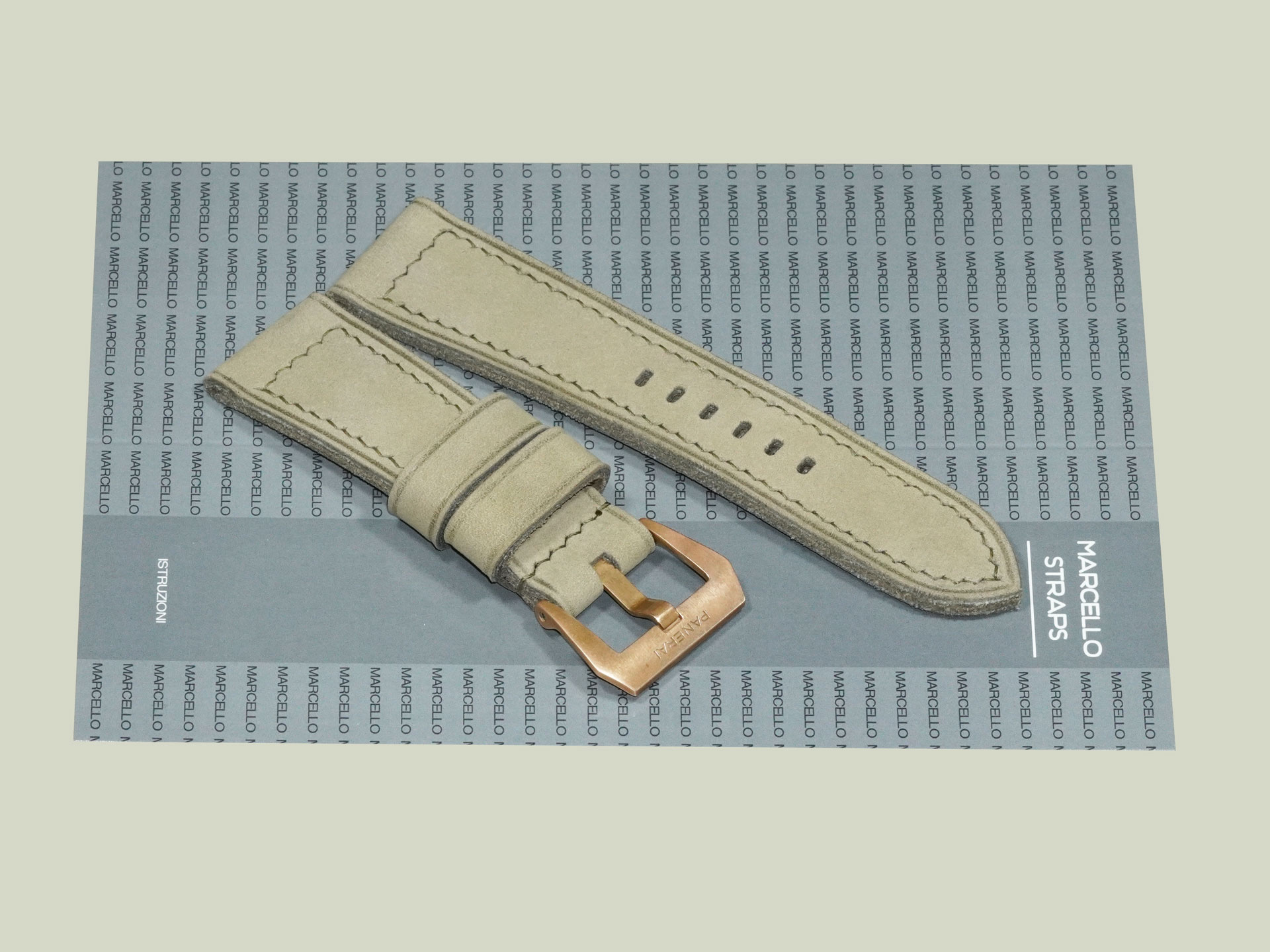 I completed the stitching in a boxed pattern using olive green thread. The buckle in the photos is the OEM bronze buckle from the PAM00968, but it’s not included with the strap. You can use your own OEM buckle or choose a different option from the dropdown menu. This lets you pair the strap with other Panerai models as well.