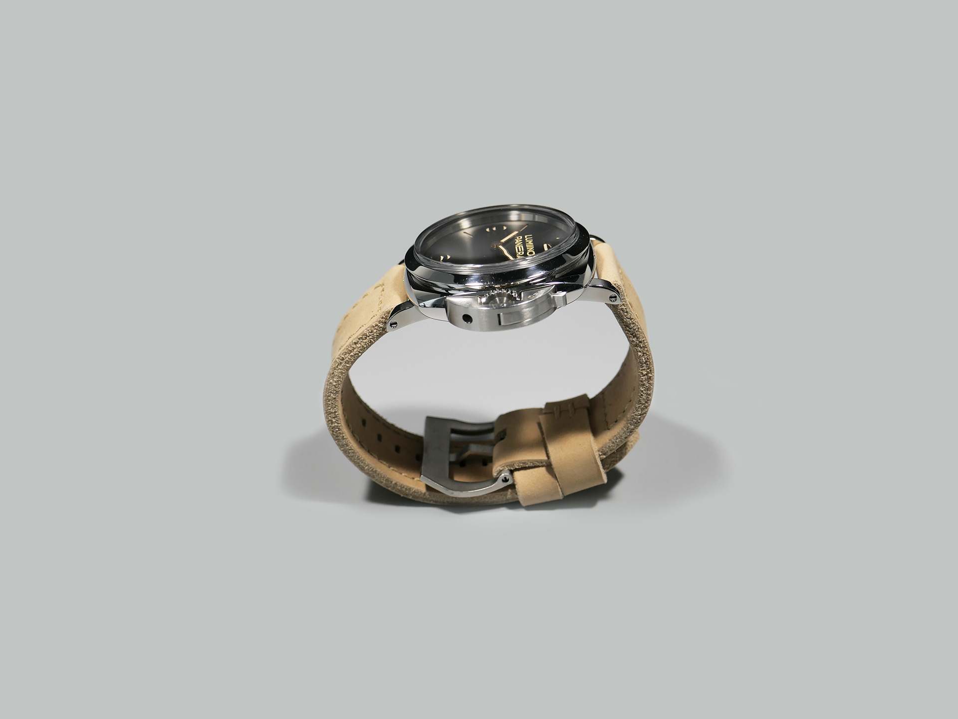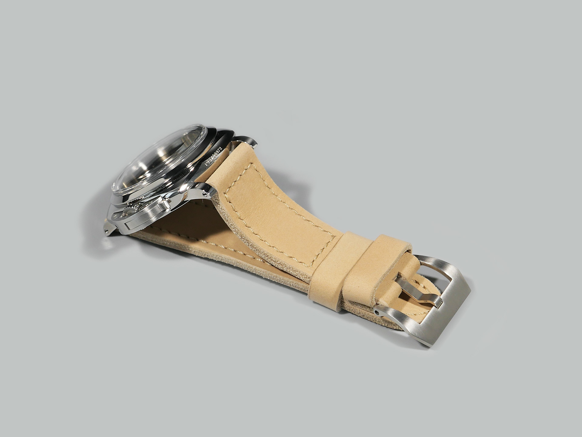 The 47mm Panerai case ships with a 26mm width strap, and there is no escaping the presence of such a case and strap combination. My designs for this case take into account several features of the 47mm cases including the arches, curves, angles, and degrees of slope of not just the case, but the buckle as well. Instead of step-in away from or trying to minimize the bulk of the case, my goal is to embrace it. To reflect this, I work with thick leathers and make the straps for this model a minimum of 5.0mm thick on average.