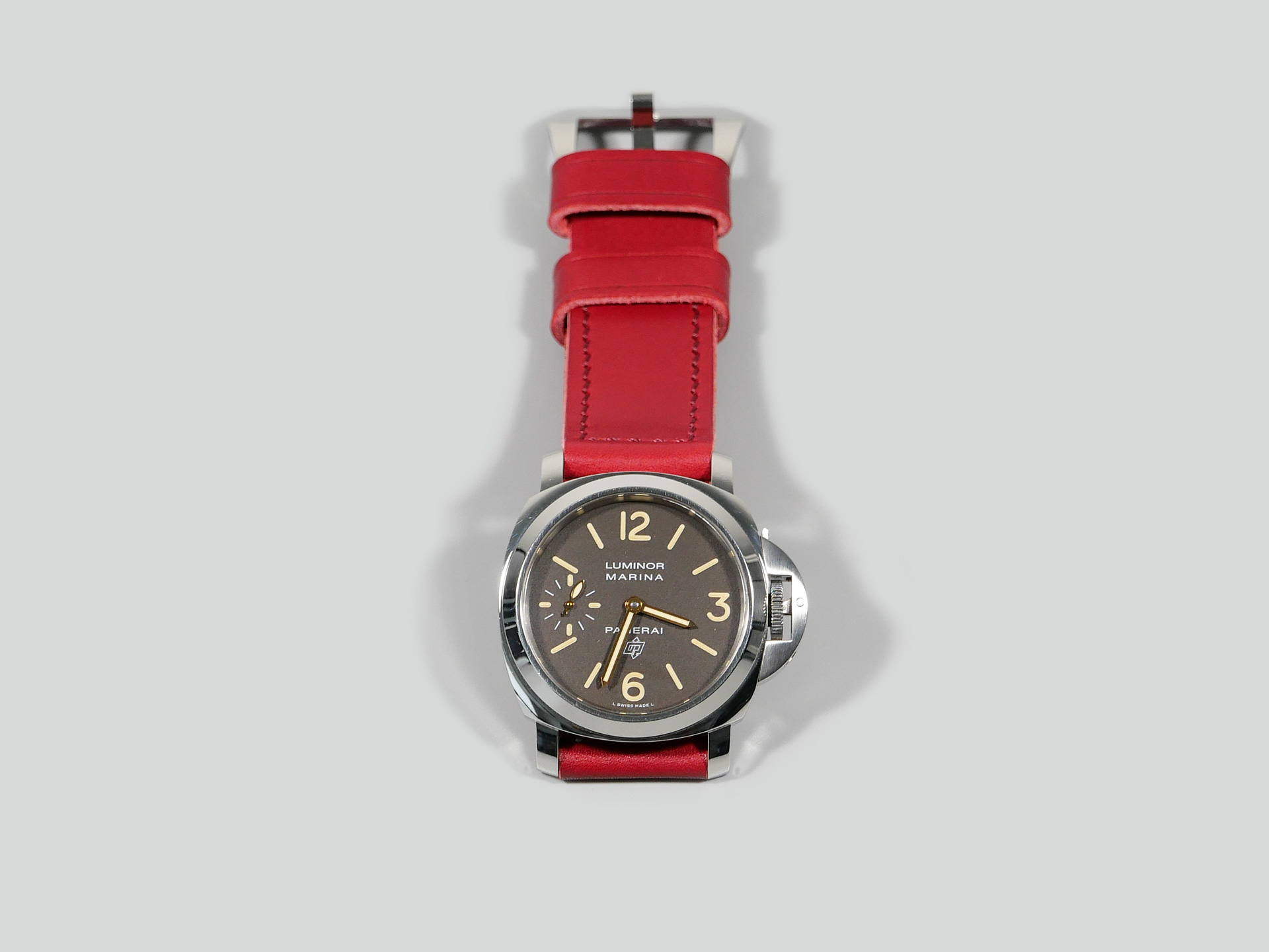 You may see the strap pictured above on the contemporary PAM00632 Luminor Logo. Thanks to the consistent color scheme, this strap works with a variety of dials and case finishes. This strap is of a medium rigidity, and will form to your wrist after multiple wears. The leather is durable, but it is best to avoid exposing it to chemicals or liquids.