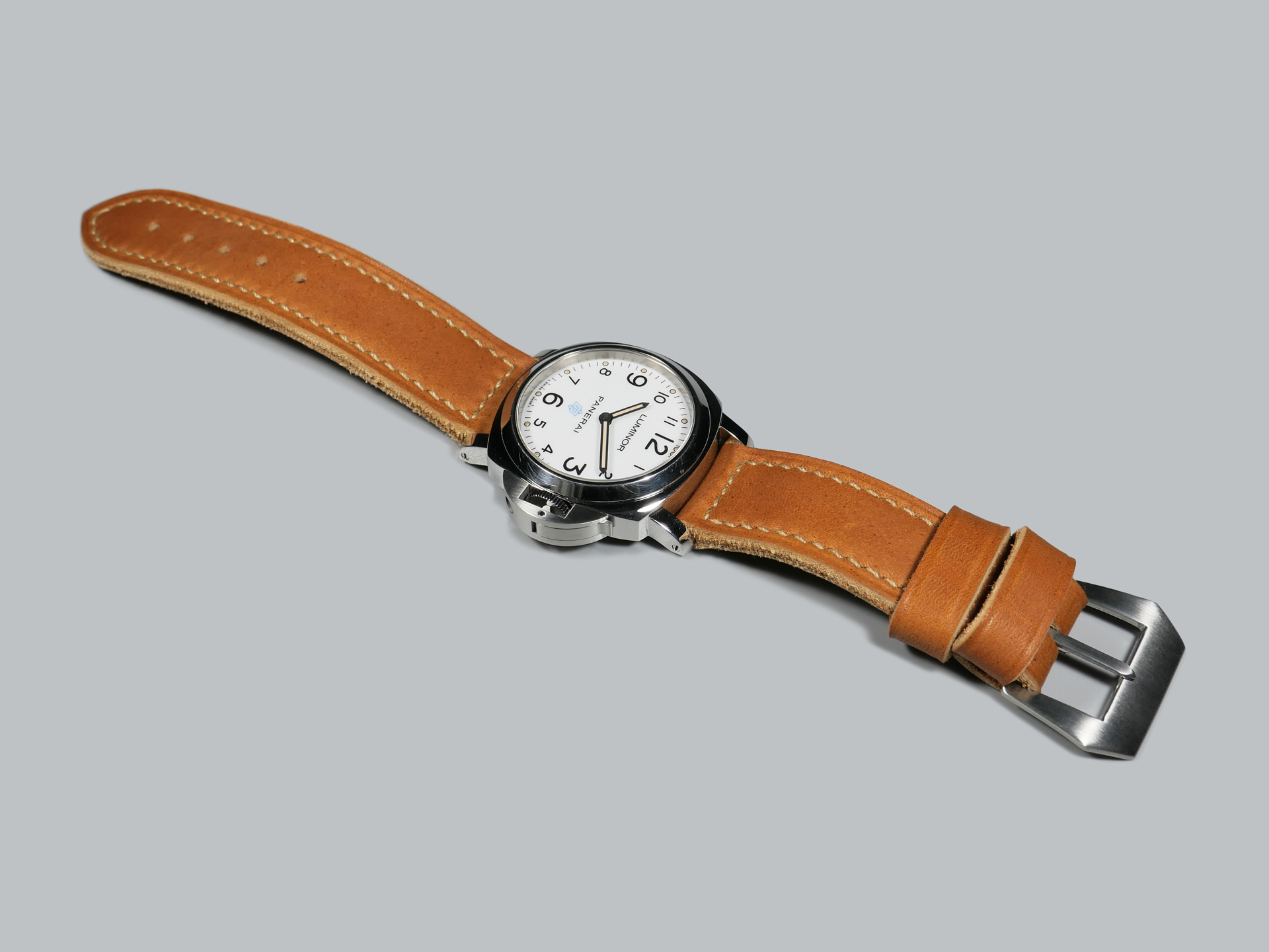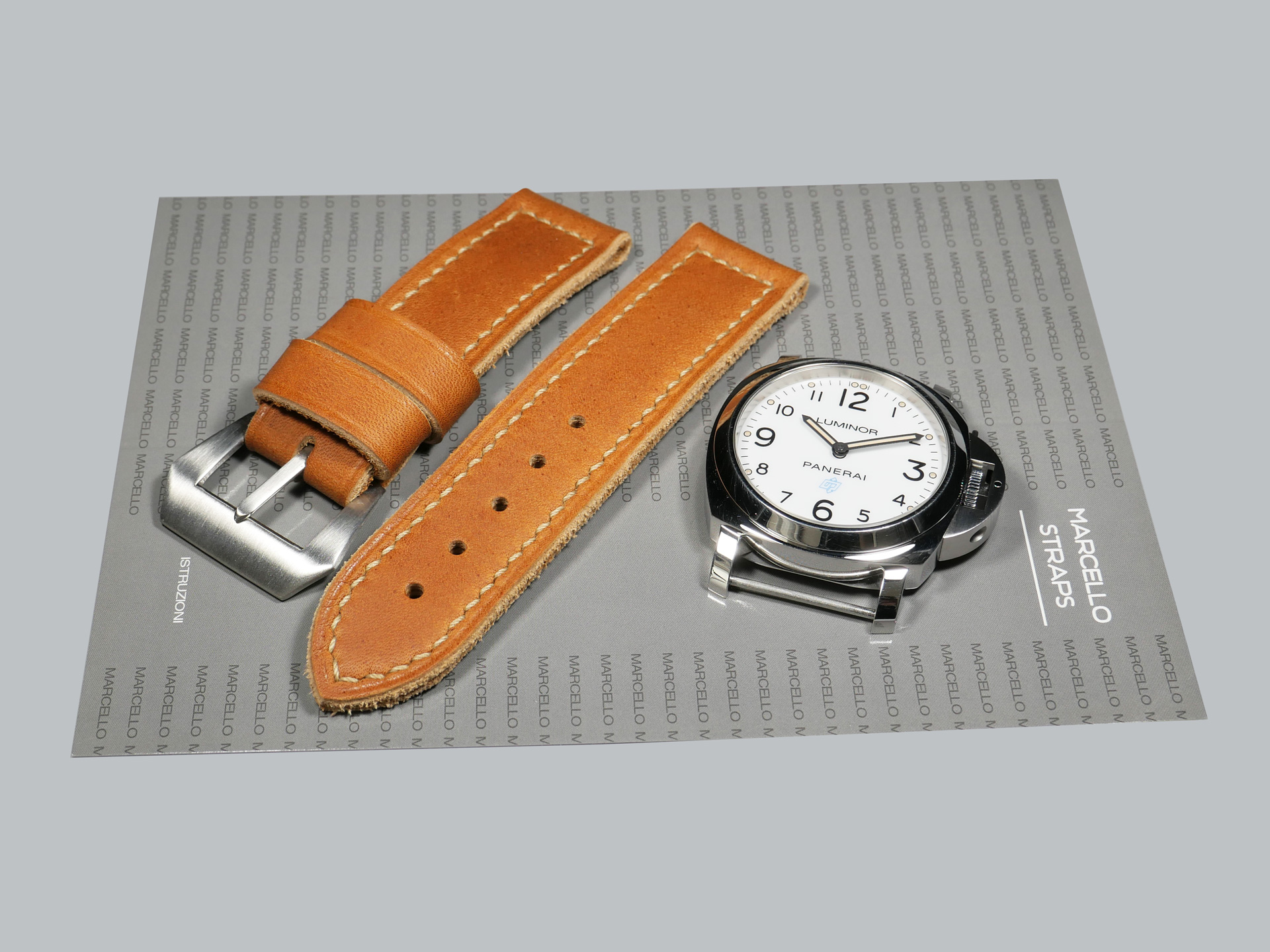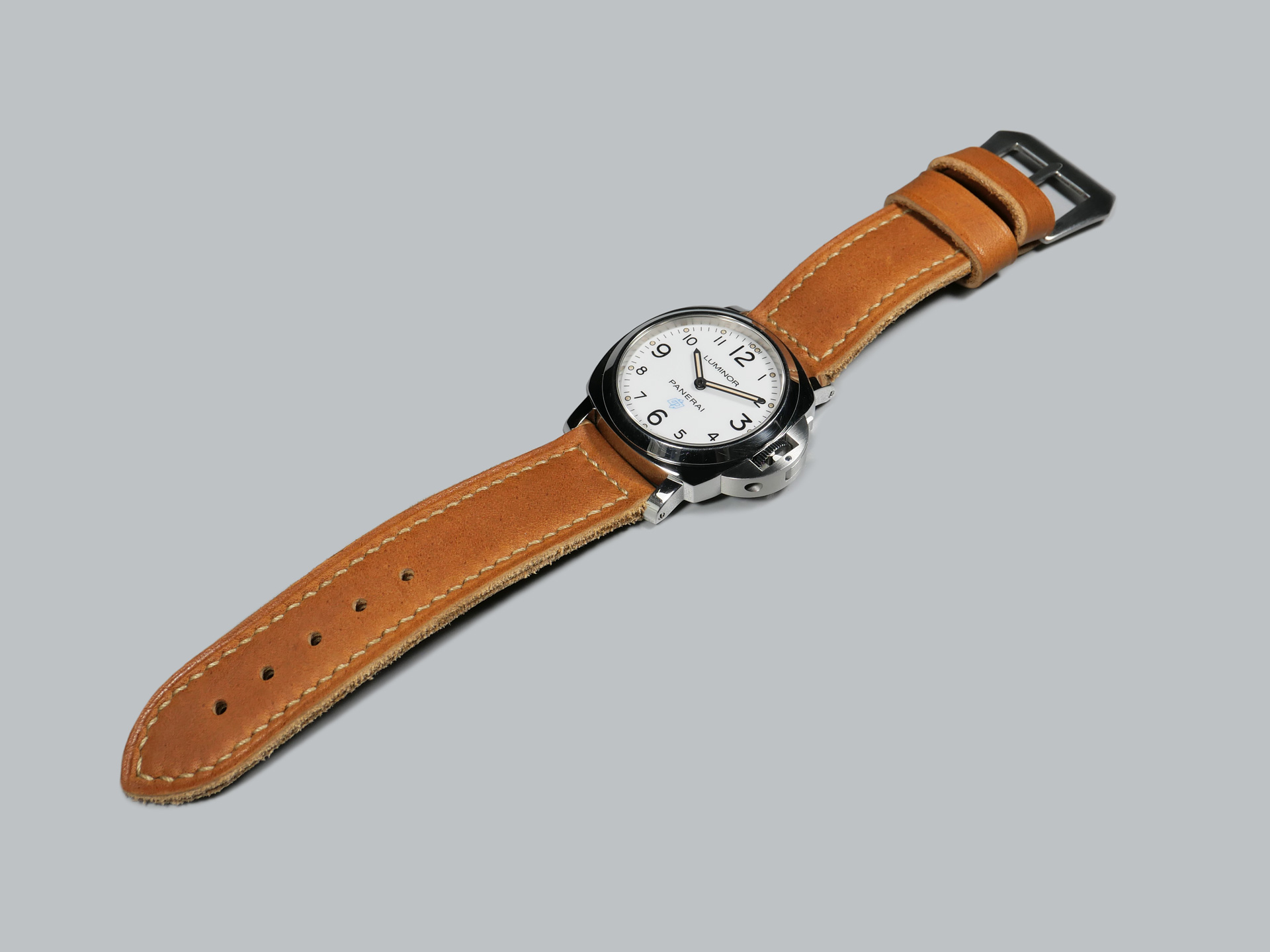 Finally, all of my 24mm Panerai straps for 44mm cases are 24/24mm, without a taper.  The only tapered straps that I make are for Radiomir cases.  My design preferences for the 44mm Panerai case tend towards longer buckle sides and shorter bottom sides. Above all, the aim is to achieve as much balance as possible.  Additionally, the stitching margins will be thinner on my 24mm Panerai straps than they are on my 47mm Panerai straps.