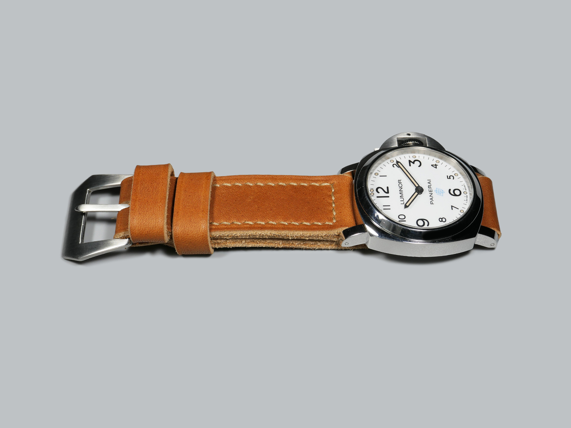 Additional Information:  The 44mm Panerai Luminor is the true workhorse of the Panerai lineup, and by far has the most potential for aftermarket strap creation.  While larger 47mm case models demand thicker straps, the 44mm Luminor case is more flexible and works with a variety of different strap thicknesses.  With that in mind, I make most of my 44mm case Panerai straps with thinner thread.  When I select the thread and spacing, I take into consideration the thickness and temper of the leather.
