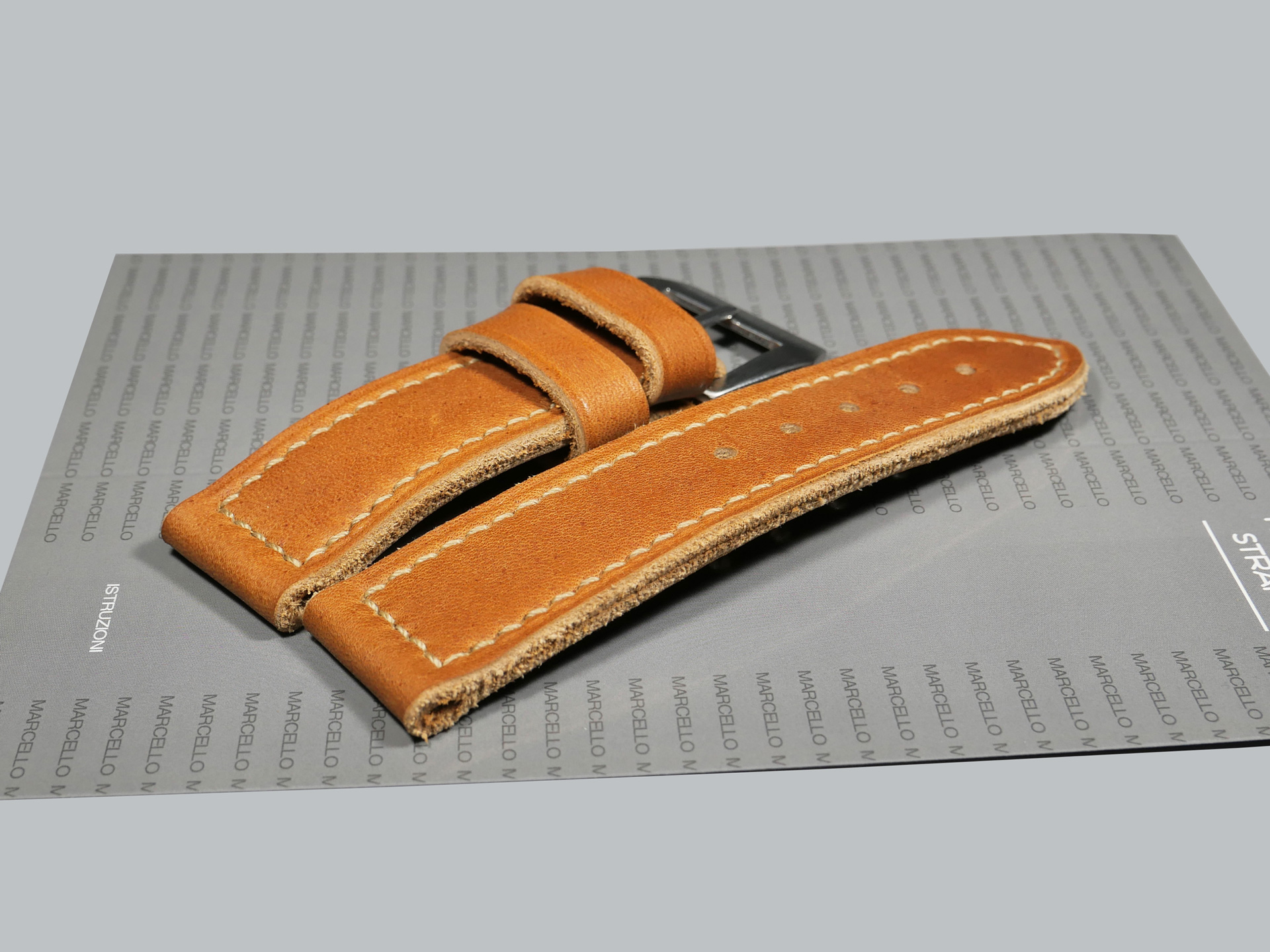 I pride myself in each aftermarket Panerai strap that I produce and perform the entire process by hand without templates or machines of any sort.  I use the absolute basic tools, the same tools that I used as a boot maker for nearly two decades.  In conclusion, as a result of the handmade nature of these straps, no two are identical.