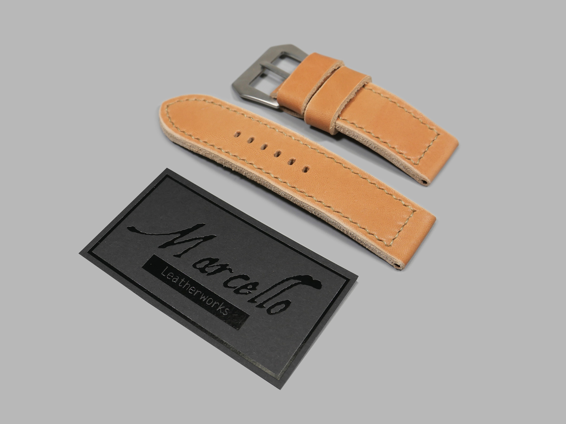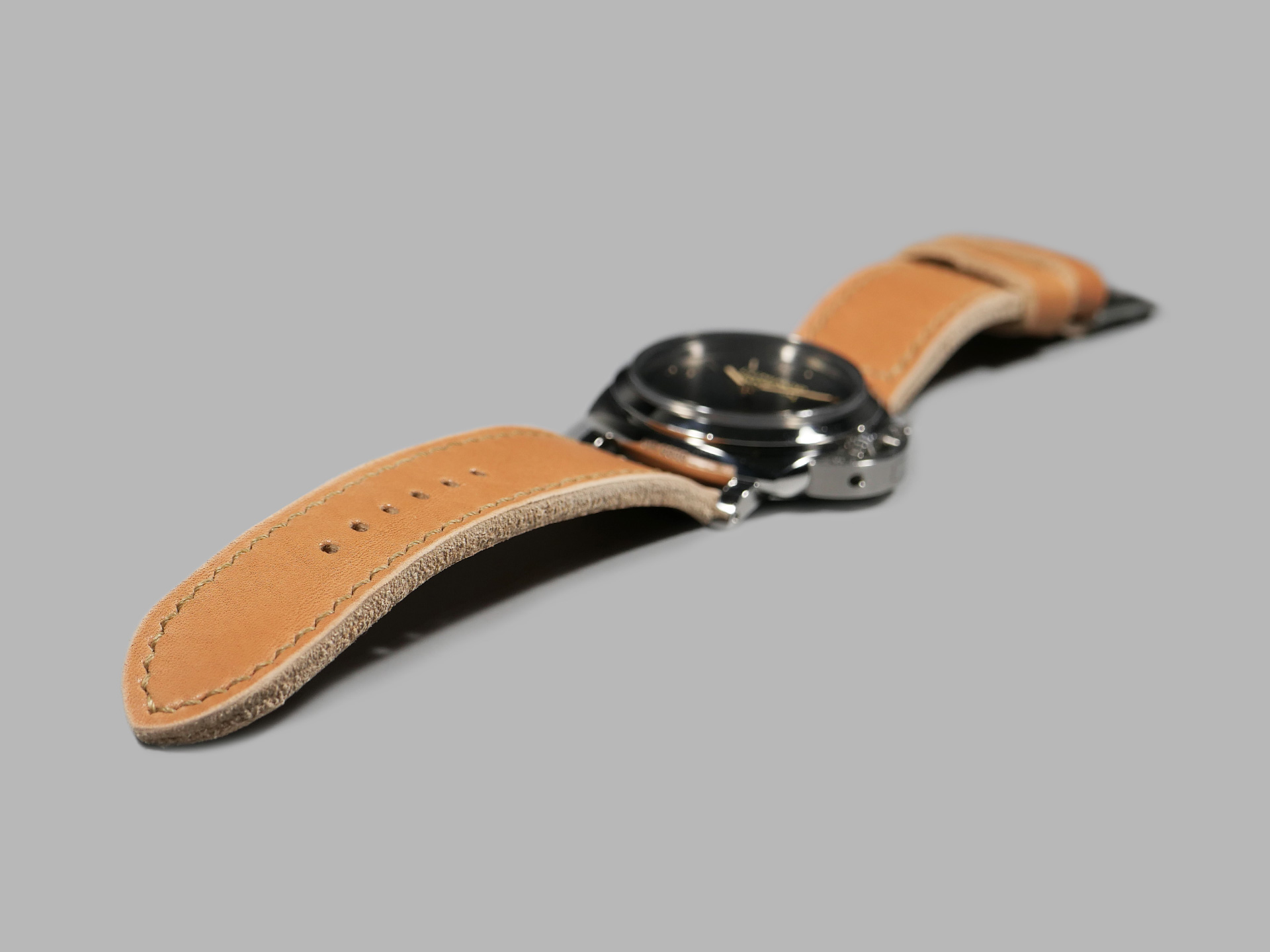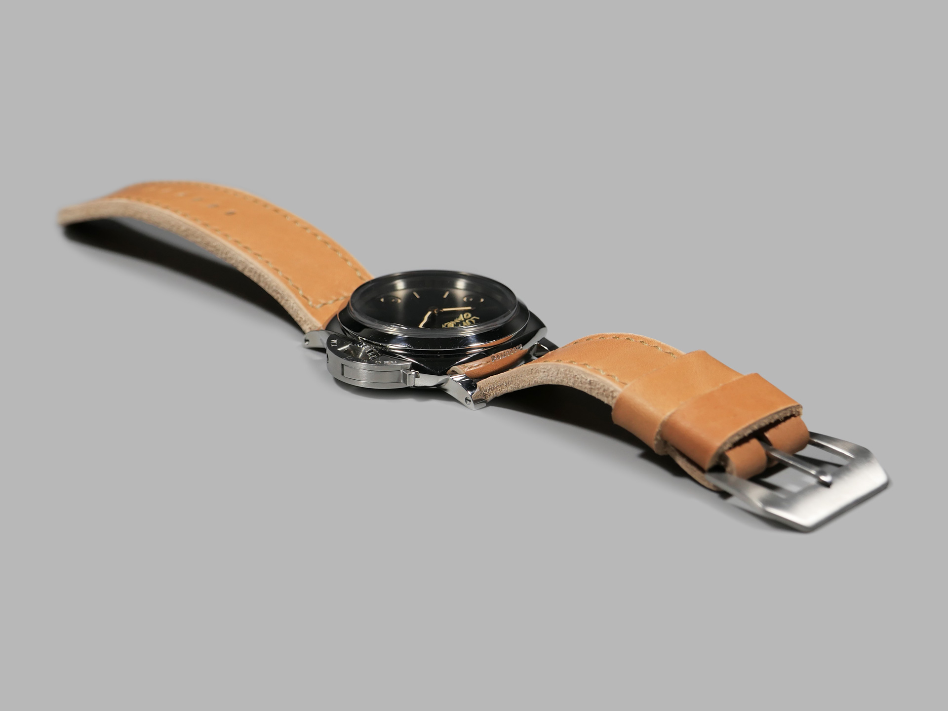 Additional Information: For each Panerai model, I have a different design philosophy regarding straps. For the 47mm Luminor series case, as well as the Radiomir 1940 and the Submersible, my concept revolves around thickness and symmetry. When I create unique straps for the 47mm series cases, I take into account the overall thickness and temper of the leather that I am working with; more so than with Radiomir or even 44mm Luminor cases.