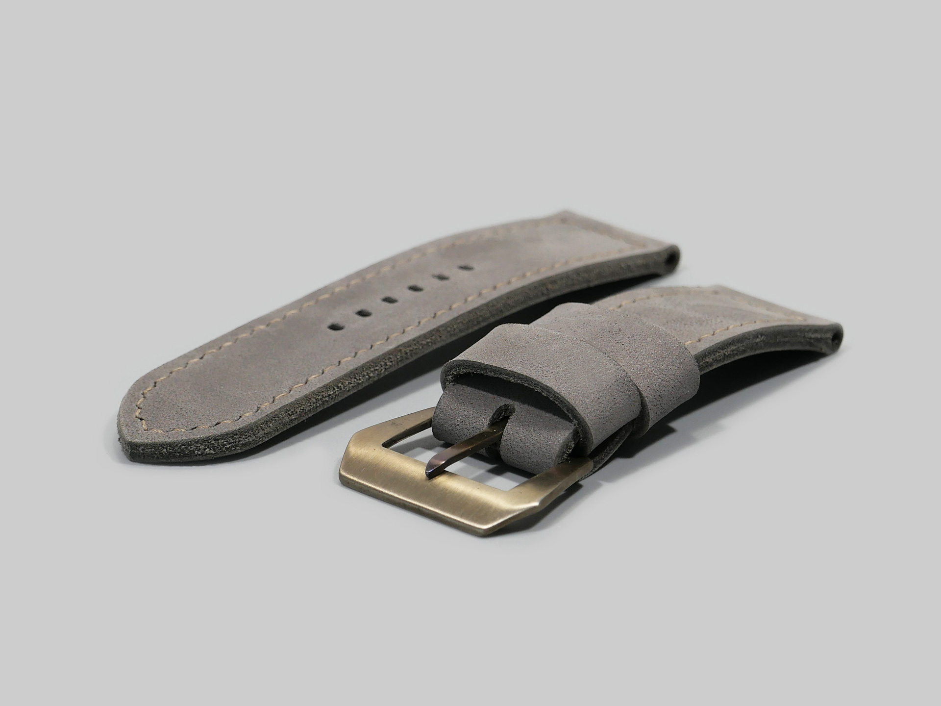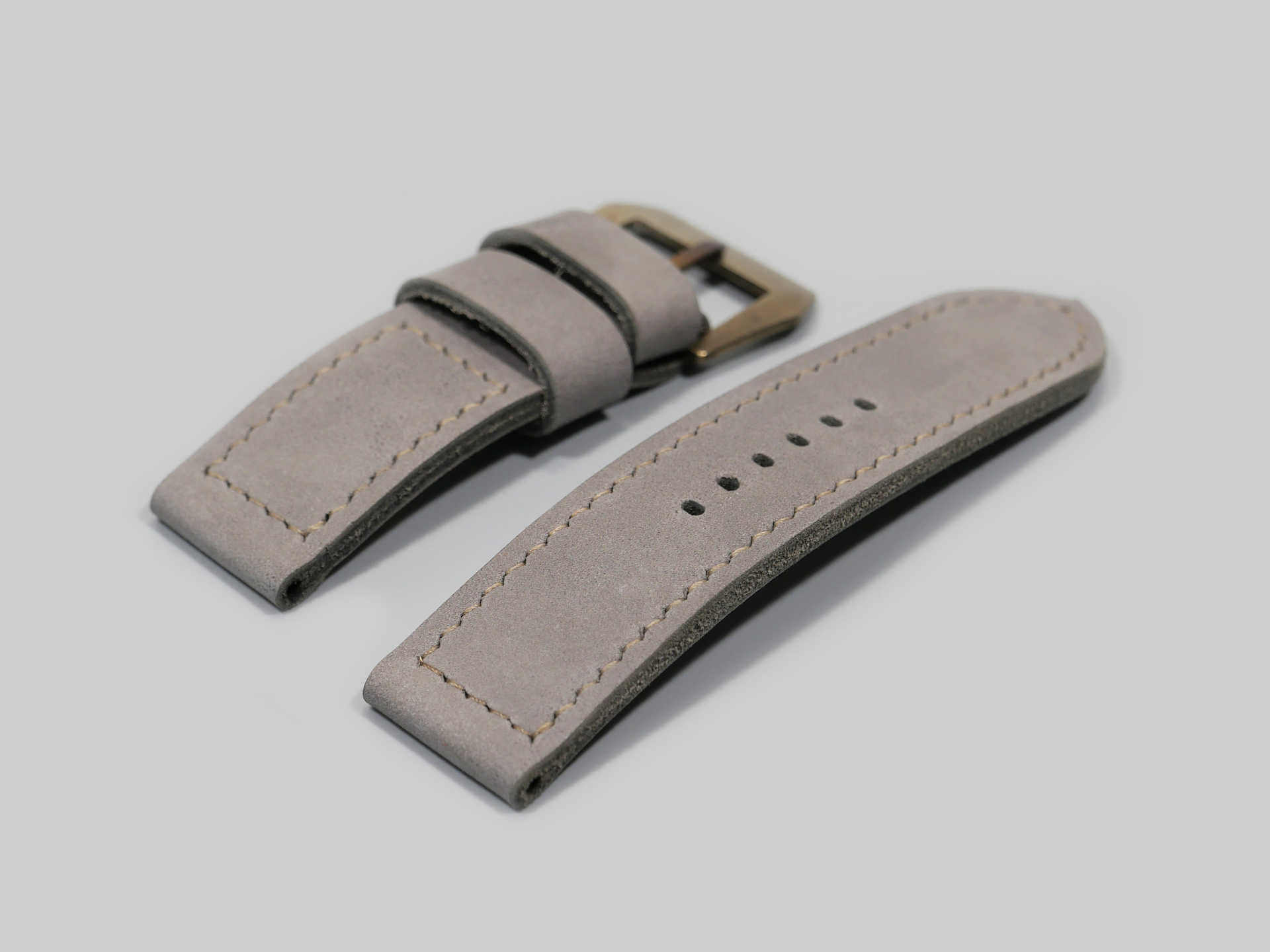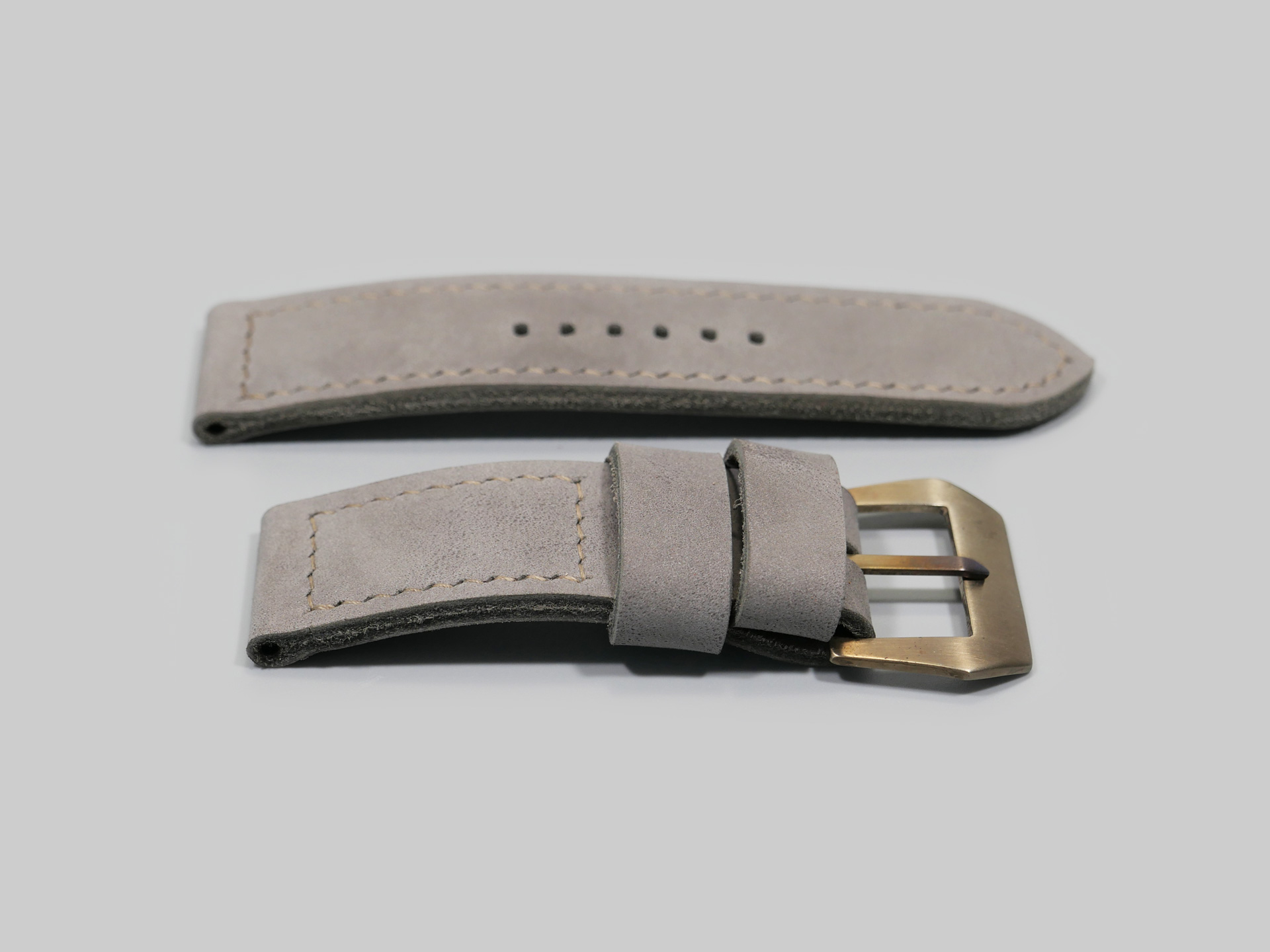 About the Leather:  This ghost lilac Panerai 47mm strap is one of a kind. I utilized a unique and difficult to source latigo leather for this project. The leather features a matte surface with hints of light purple or dolphin grey, depending on the lighting. This strap features unfinished edges. I designed the strap with one floating keeper and one fixed. A thin and subtle color-matched thread keeps the color theme consistent throughout.