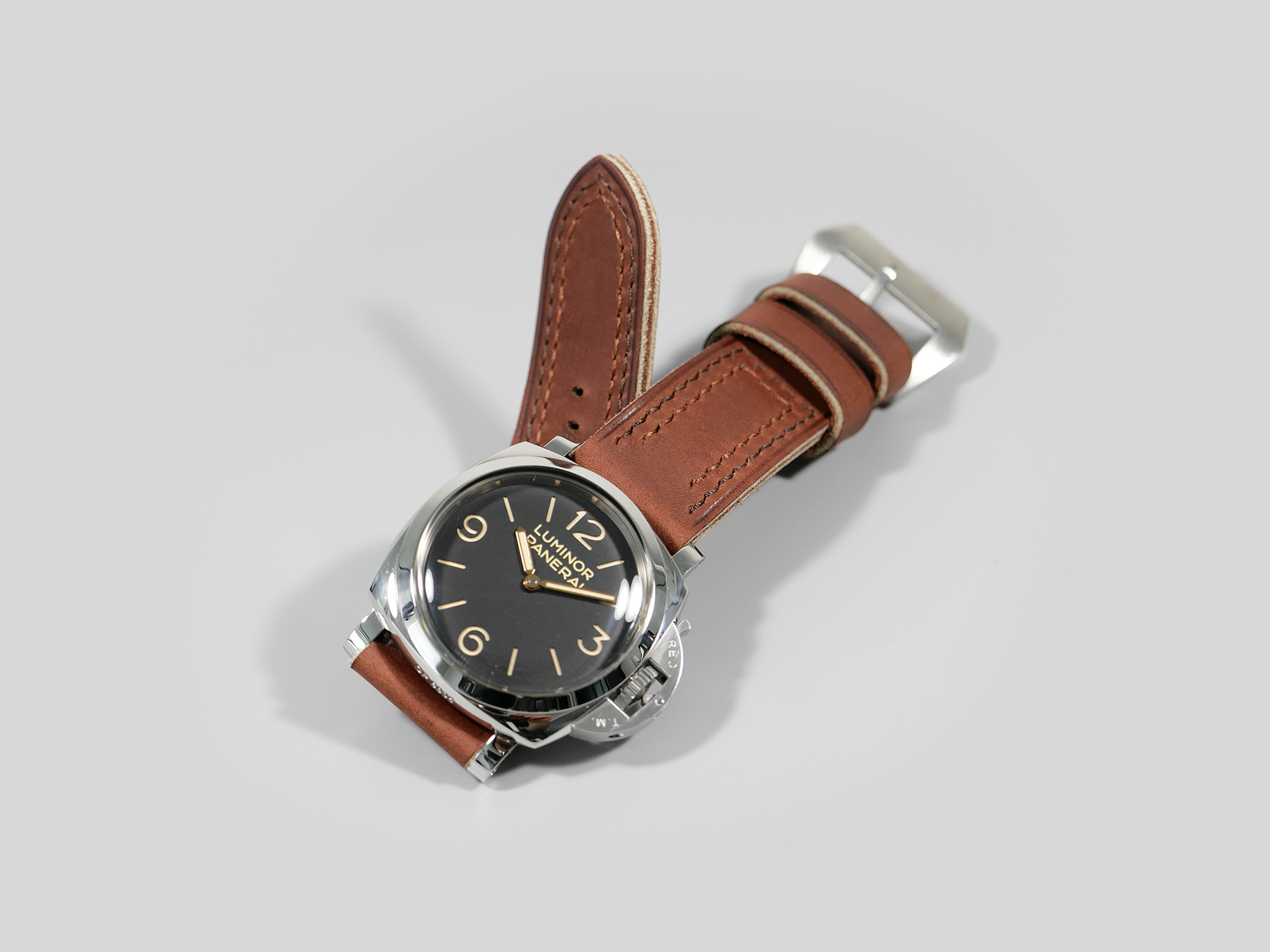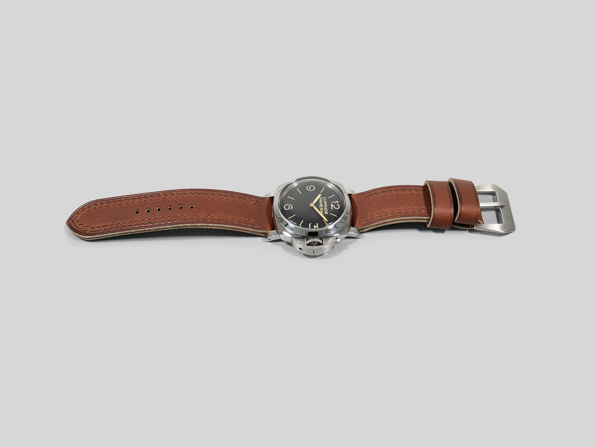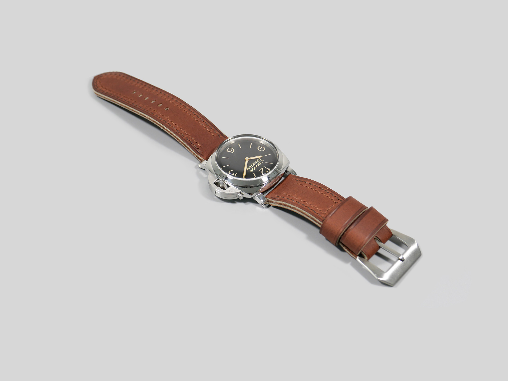 Additional Information:Â For each Panerai model, I have a different design philosophy regarding straps. For the 47mm Luminor series case, as well as the Radiomir 1940 and the Submersible, my concept revolves around thickness and symmetry. When I create unique straps for the 47mm series cases, I take into account the overall thickness and temper of the leather that I am working with; more so than with Radiomir or even 44mm Luminor cases.