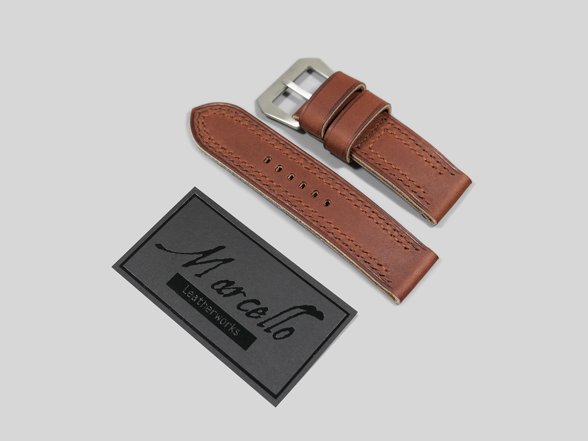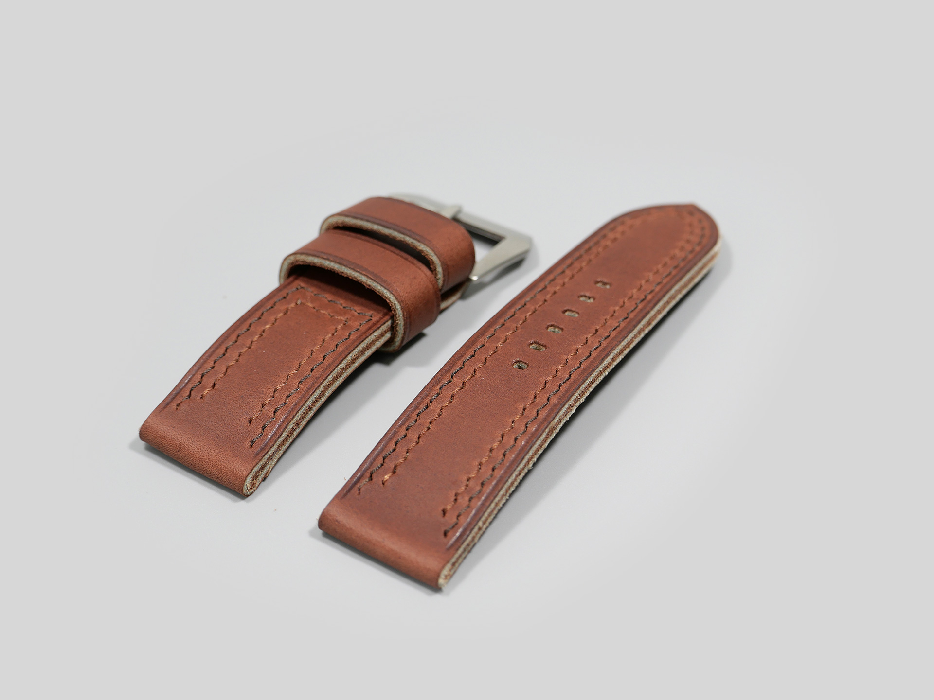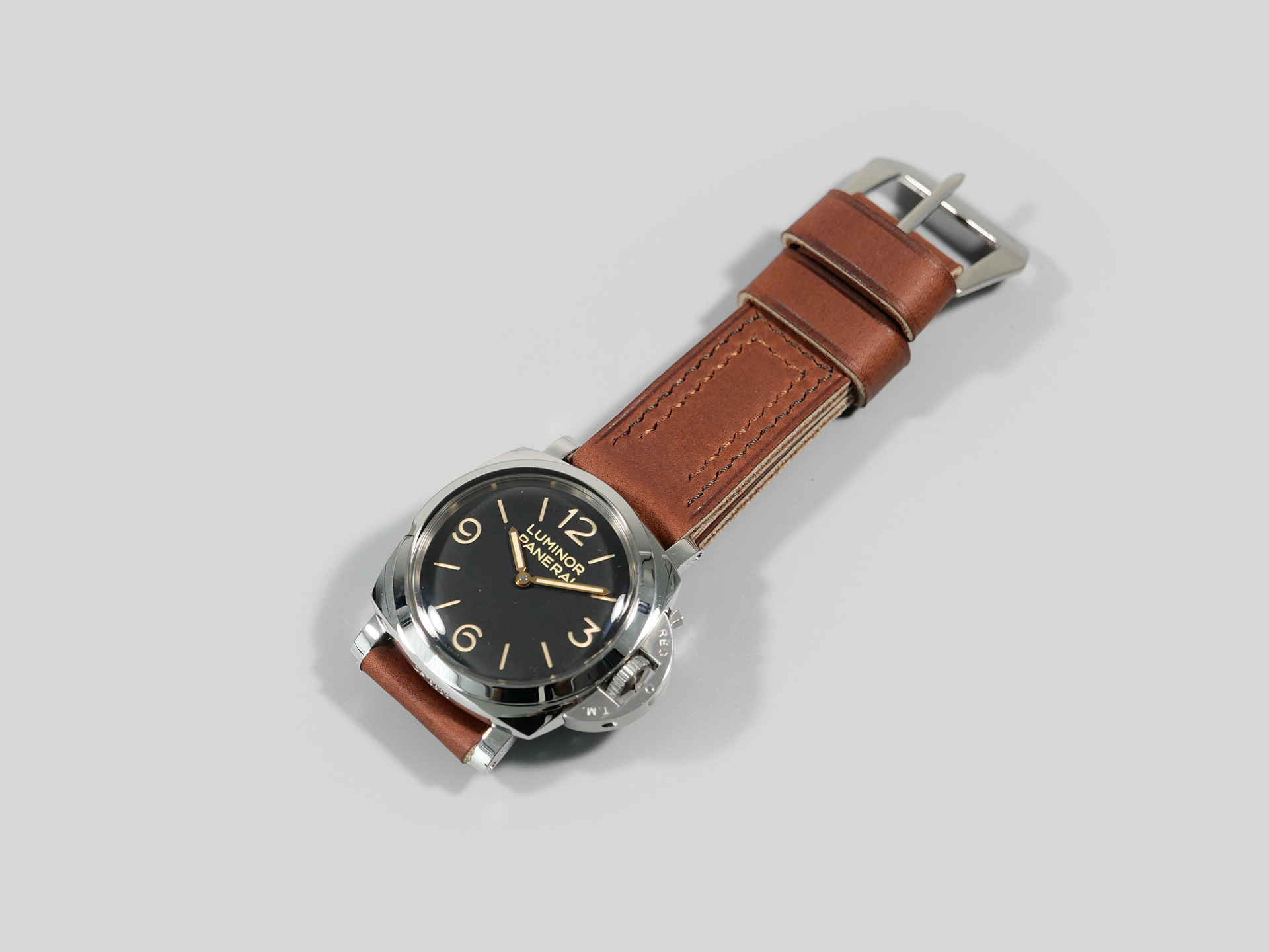 Additional Information:Â For each Panerai model, I have a different design philosophy regarding straps. For the 47mm Luminor series case, as well as the Radiomir 1940 and the Submersible, my concept revolves around thickness and symmetry. When I create unique straps for the 47mm series cases, I take into account the overall thickness and temper of the leather that I am working with; more so than with Radiomir or even 44mm Luminor cases.