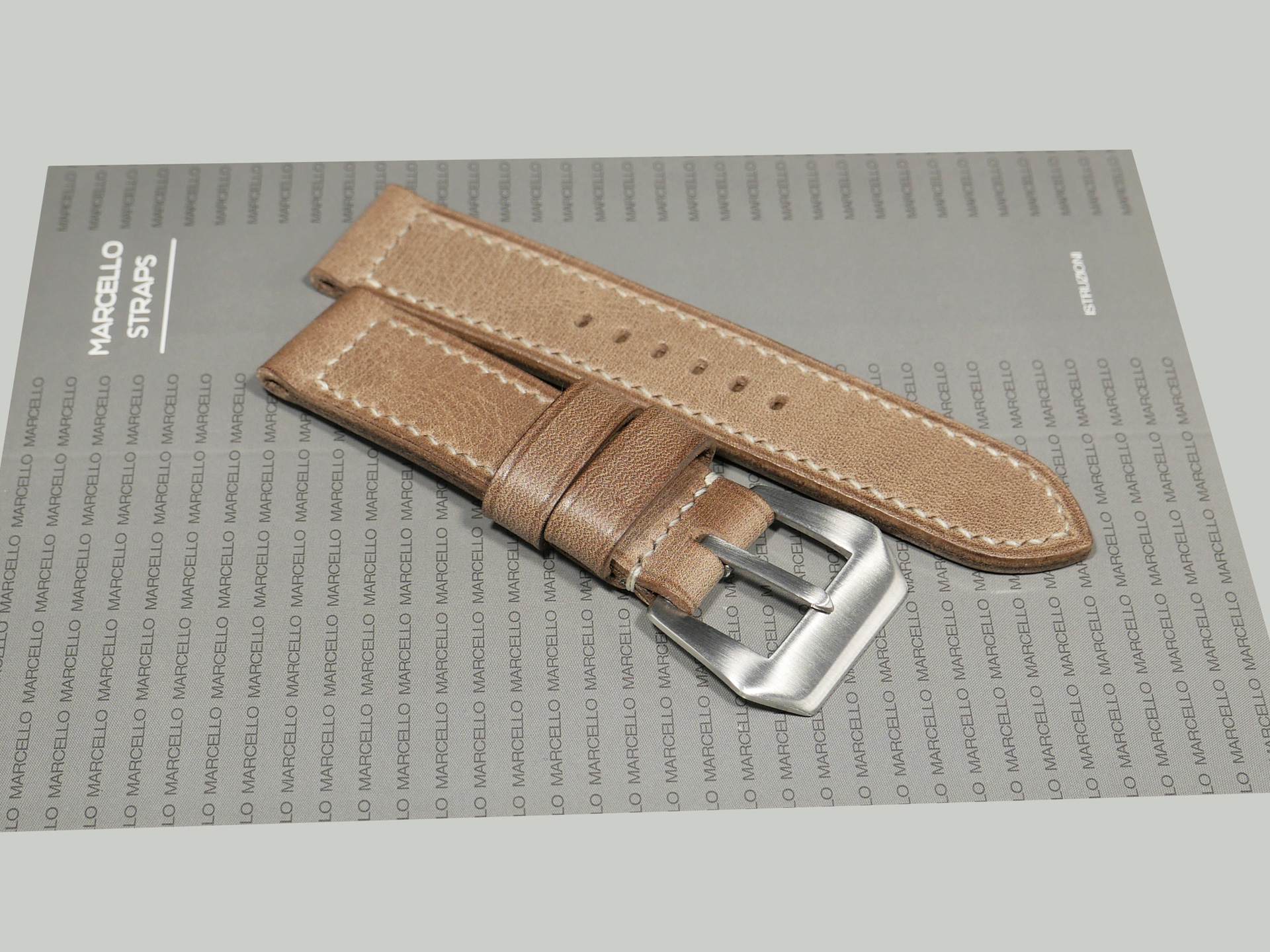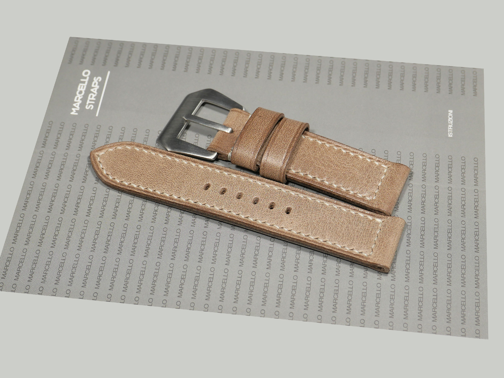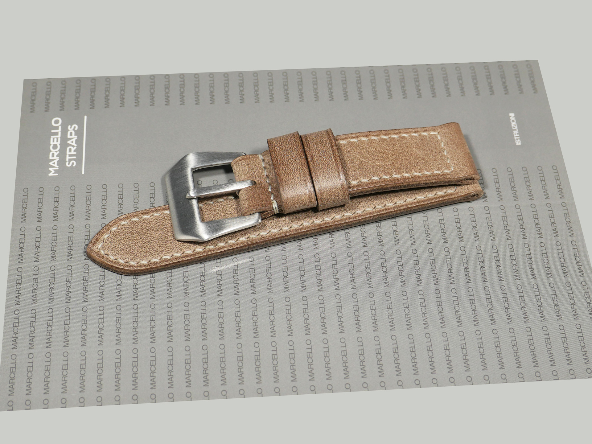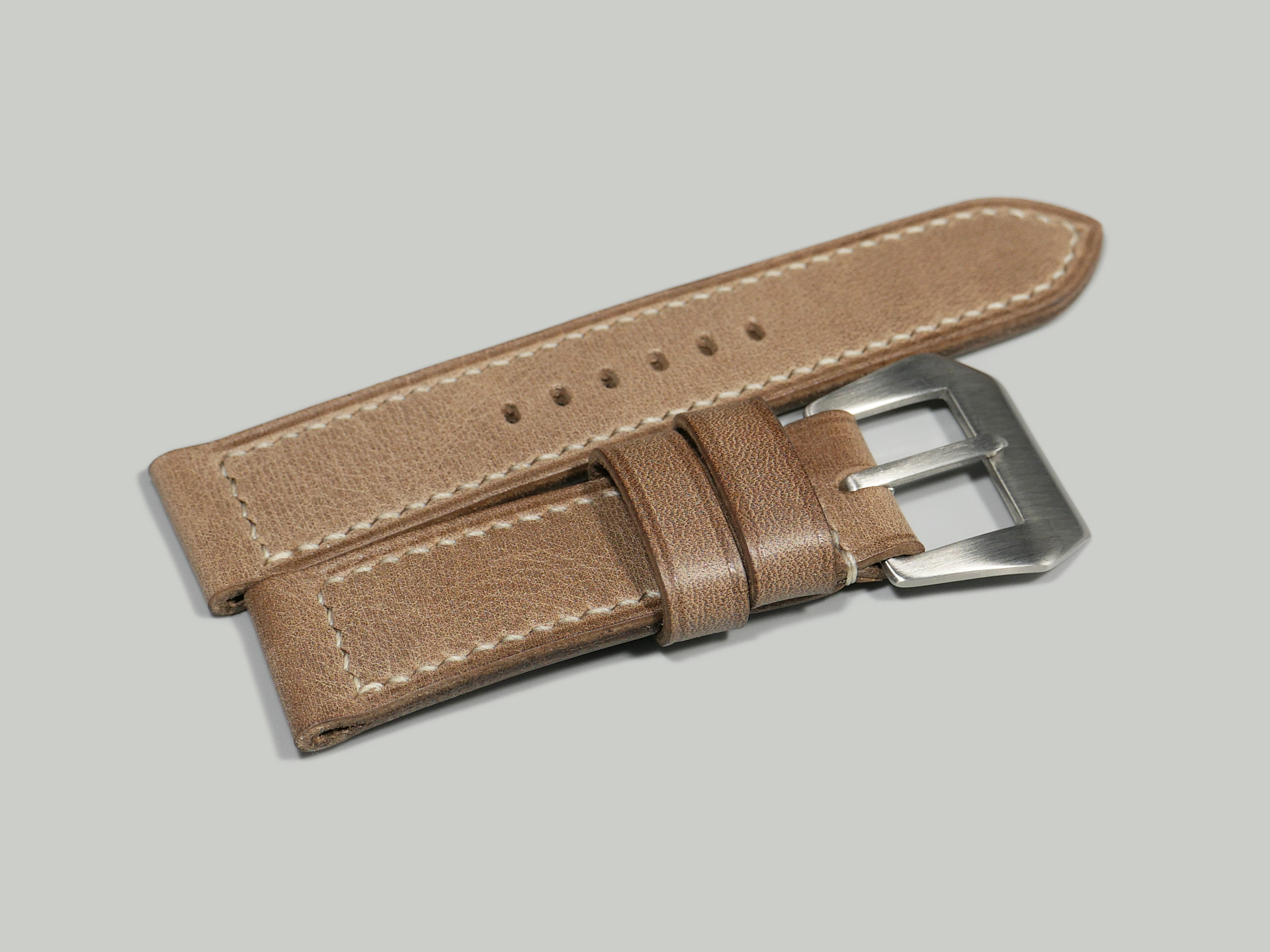 Please don’t hesitate to contact me if you have questions about any of my custom Panerai laminar Due aftermarket straps. I pride myself in each aftermarket Panerai strap that I produce. I complete the entire process by hand without templates or machines of any sort. Additionally, I use traditional tools, the same tools that I used as a boot maker for nearly two decades. Finally, as a result of the hand made nature of these straps, no two are identical.