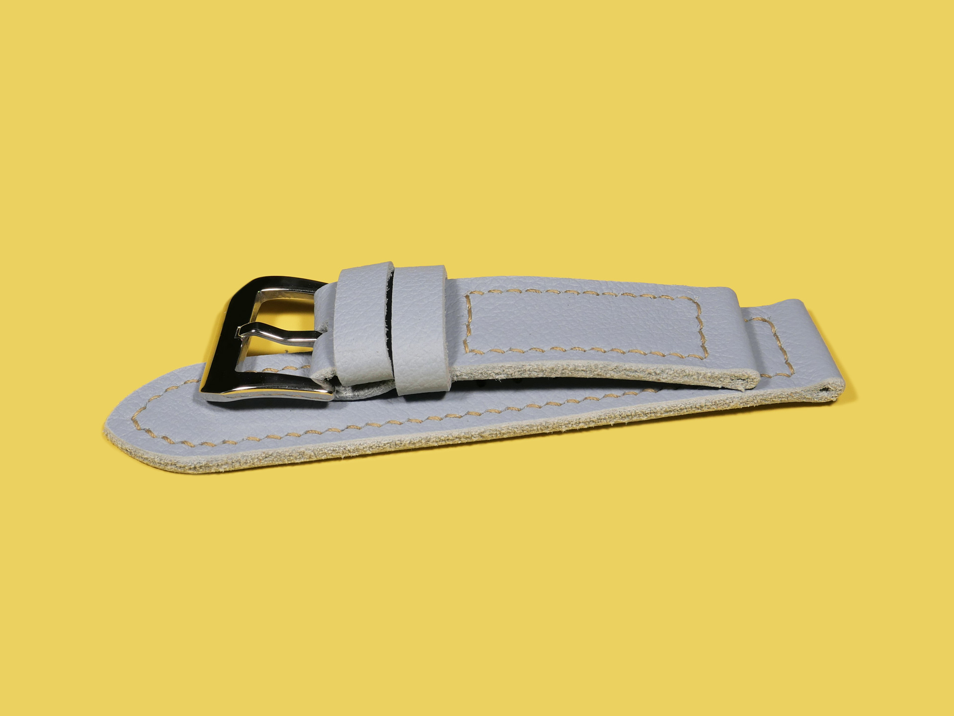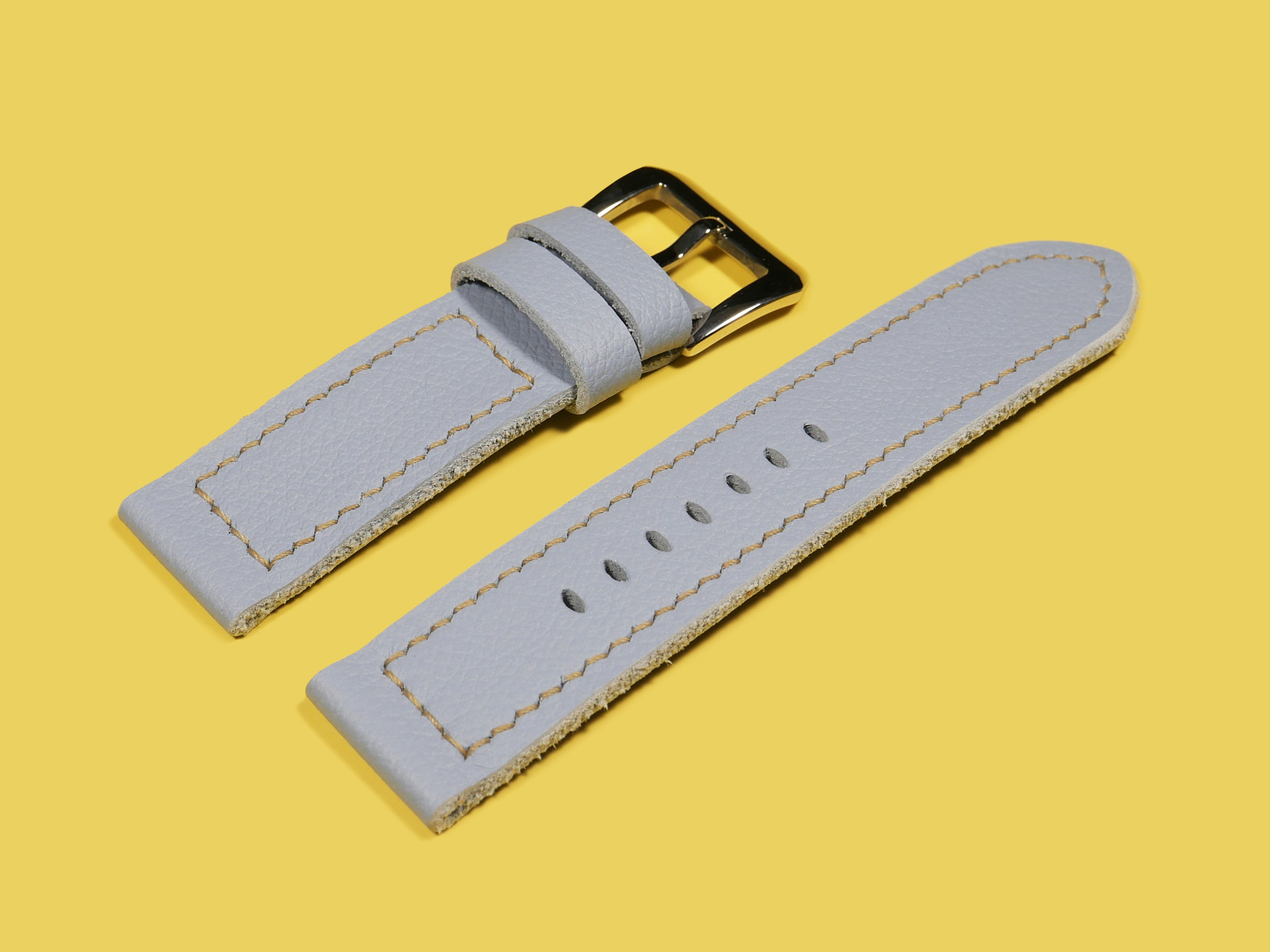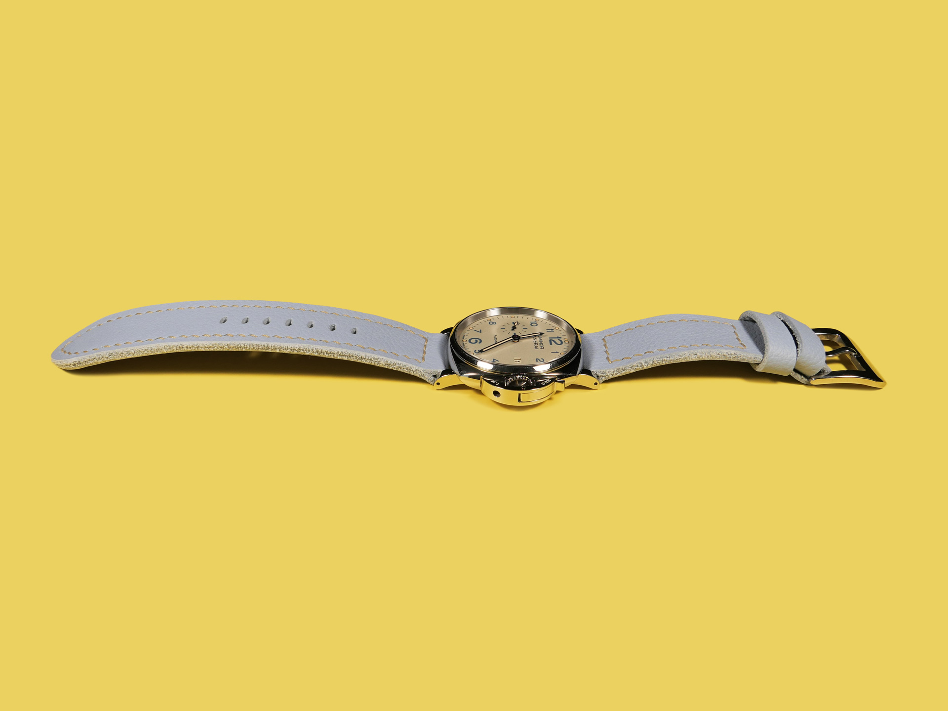 About the Leather:  I crafted this powder blue Panerai Due strap 100% by hand and hand stitched it as with all of my straps. This leather is the perfect thickness and temper for a 42mm Panerai Luminor Due model.  This strap features a uniform powder blue color with a milled finish.  For the stitching, I specifically utilized beige thread to match the indications on the PAM00906 sample watch.  Feel free to request any color stitching at no additional cost when ordering.  I performed the stitching on this strap in a boxed pattern.  I designed this Luminor Due strap with one floating keeper and one fixed.  This strap features a soft temper that hugs the wrist and is comfortable to wear all day long.