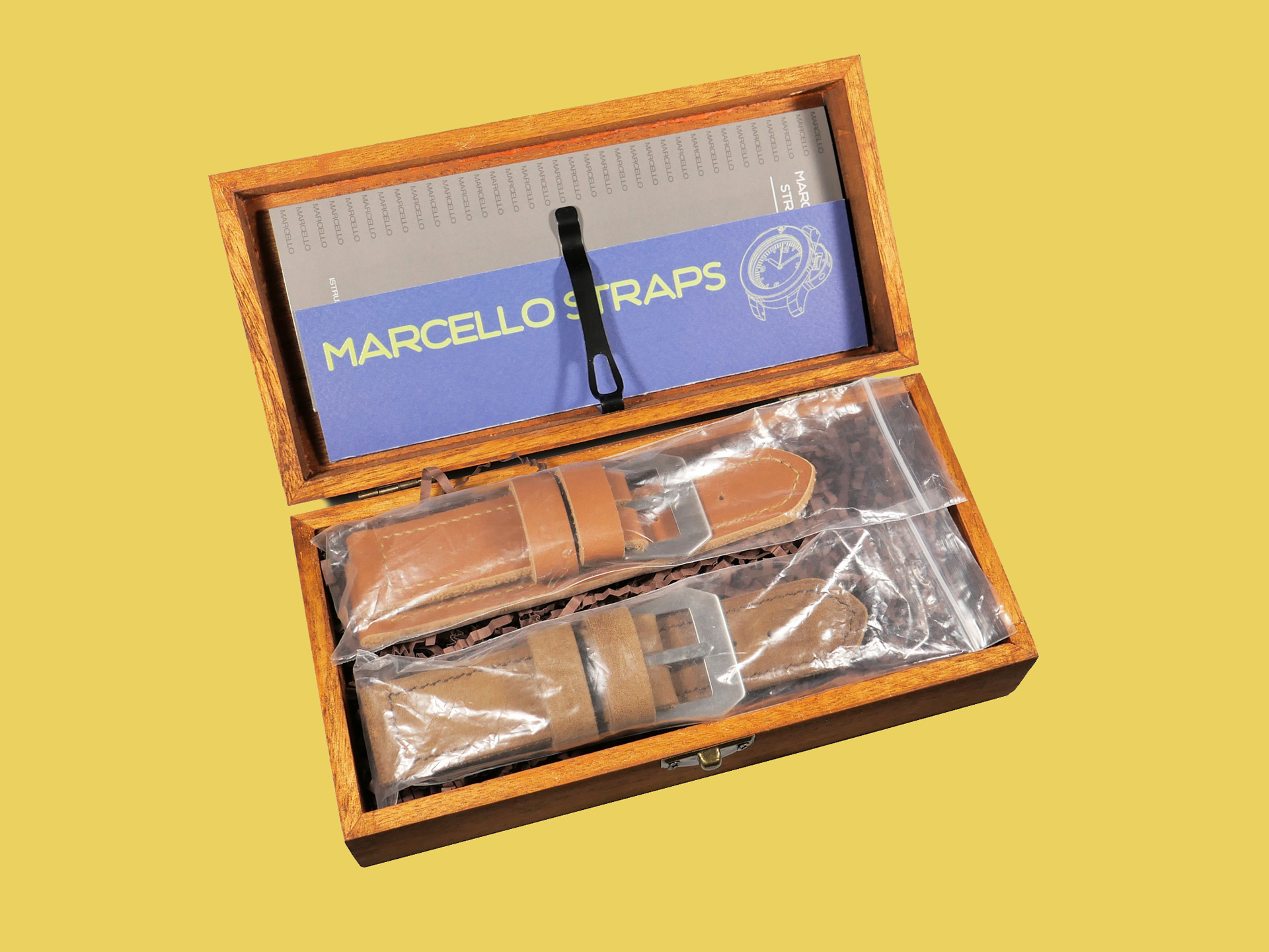 What We Include:  Watch strap (top, bottom), polished buckle, one wooden box with papers.
