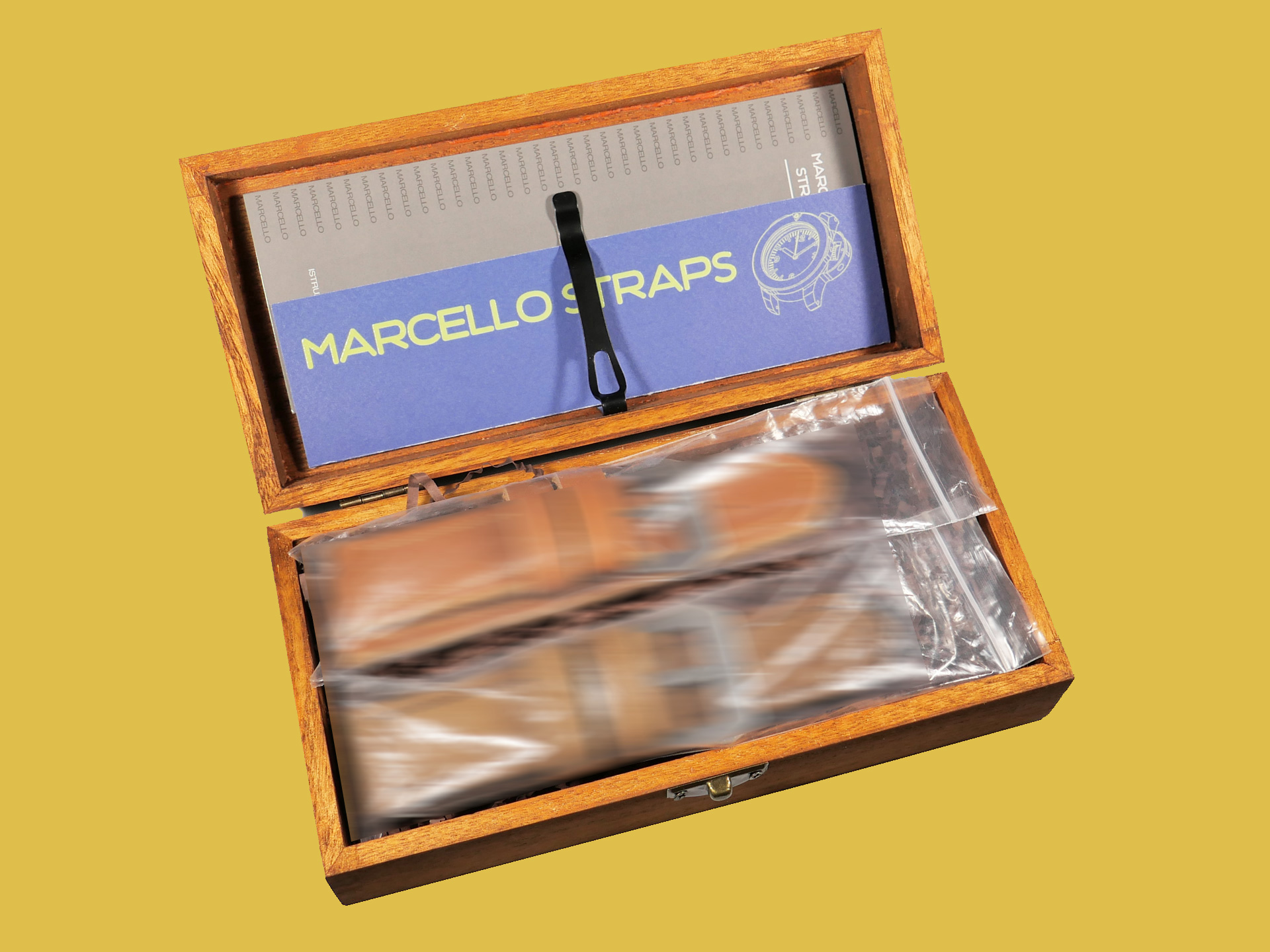 What We Include:Â Watch strap (top, bottom), brushed flat GPF style pin buckle, one wooden gift box.