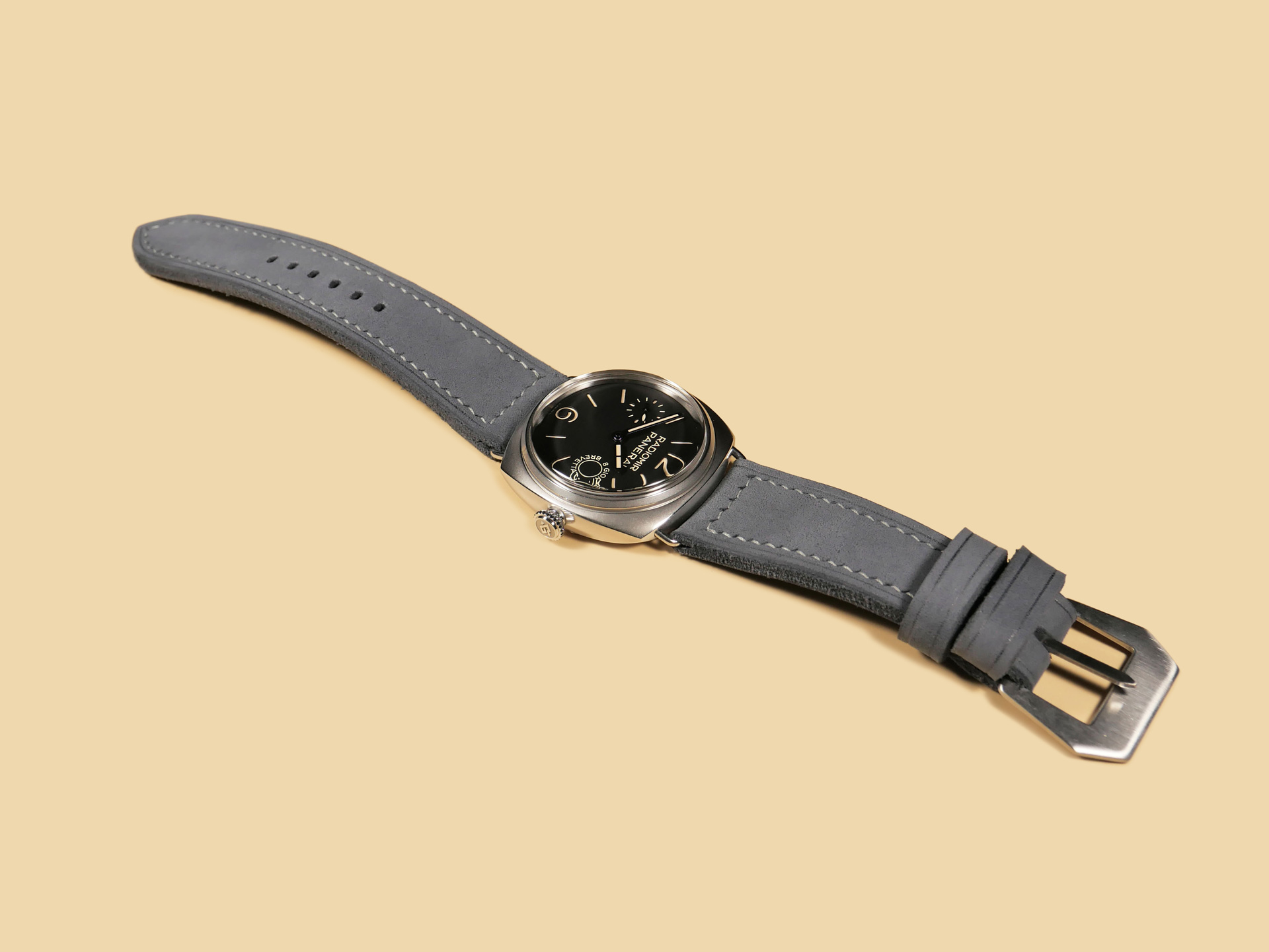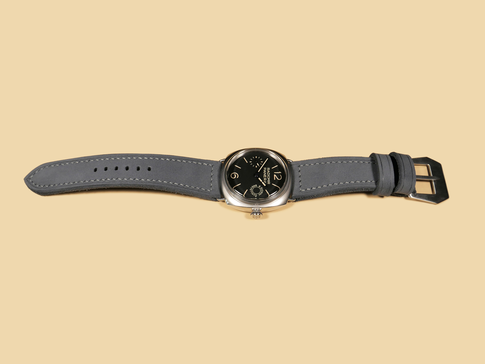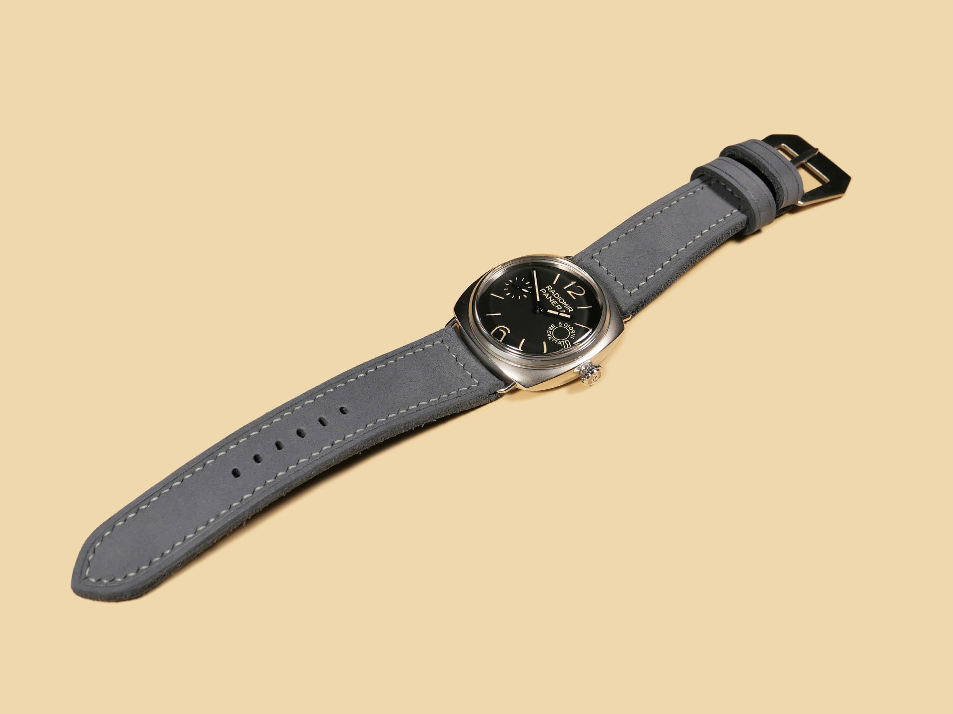 Additional Information: For each Panerai watch, I have a different design philosophy when it comes to making straps. The Radiomir is my historical favorite among all Panerai cases. I bought my first Radiomir nearly two decades ago and did not start making straps for them until many years later when I neared retirement. The Radiomir is a fun and challenging case to make custom straps for.Â