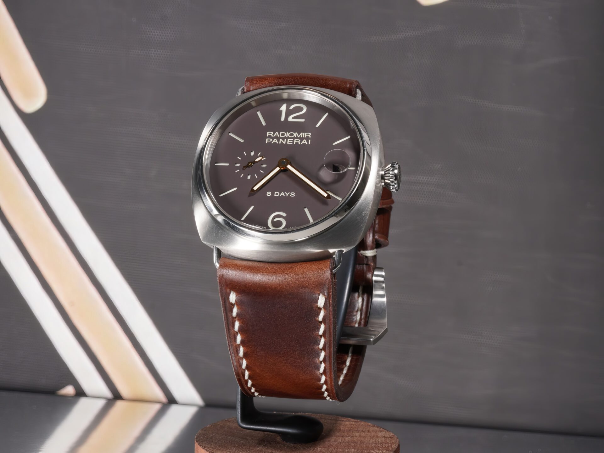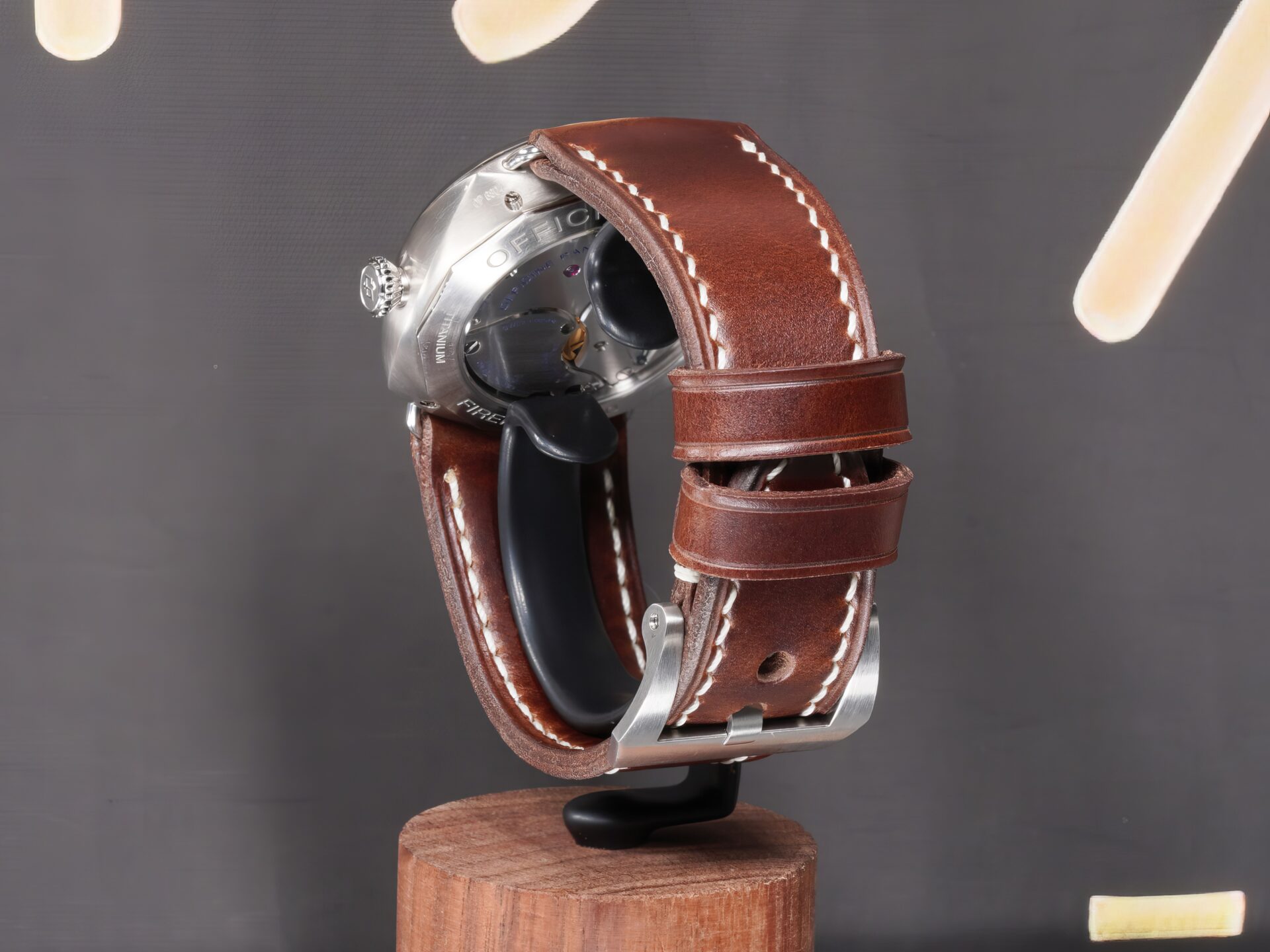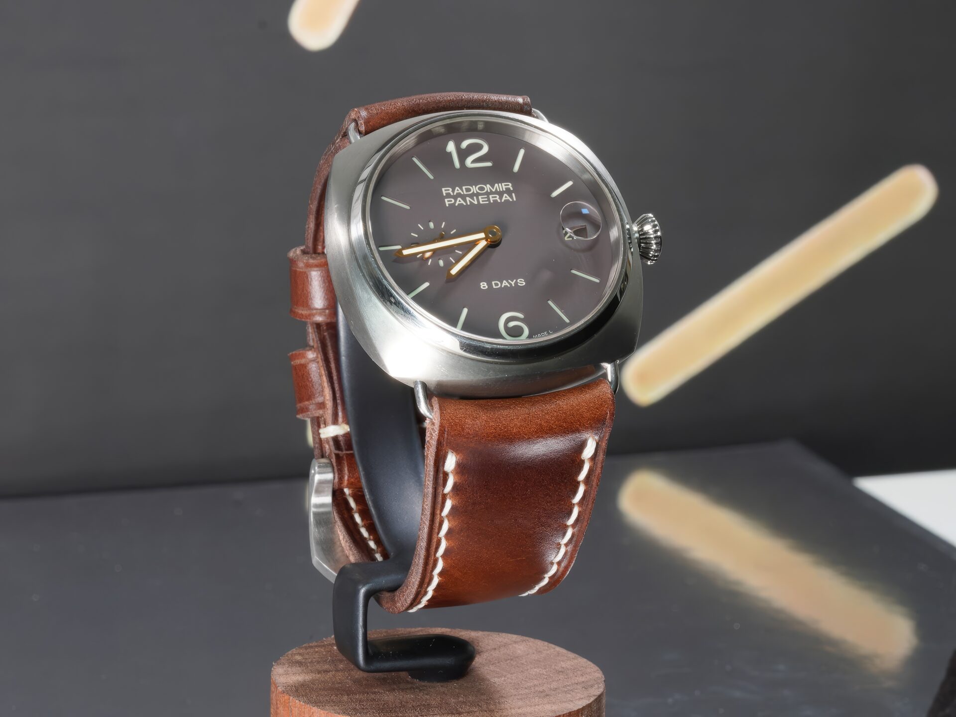 About the Leather: This strap is made from dark brown chrome-tanned leather with pronounced pull-up character, giving the surface natural movement and tonal variation as it flexes on the wrist. The color stays deep and understated, with lighter highlights emerging only through wear—exactly how a proper Panerai strap should age.