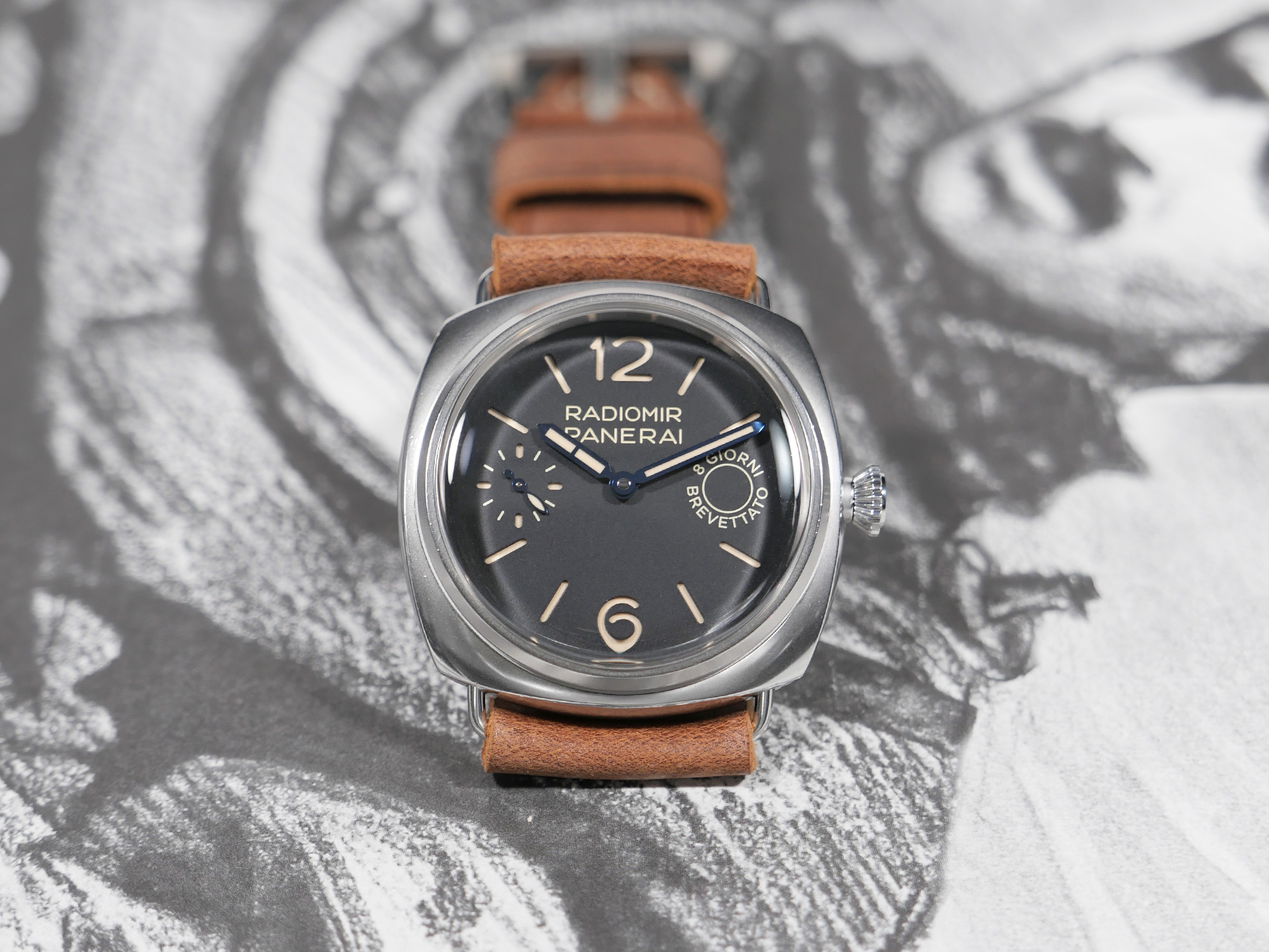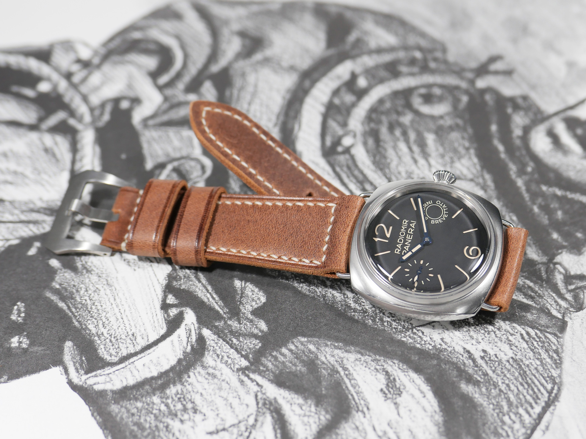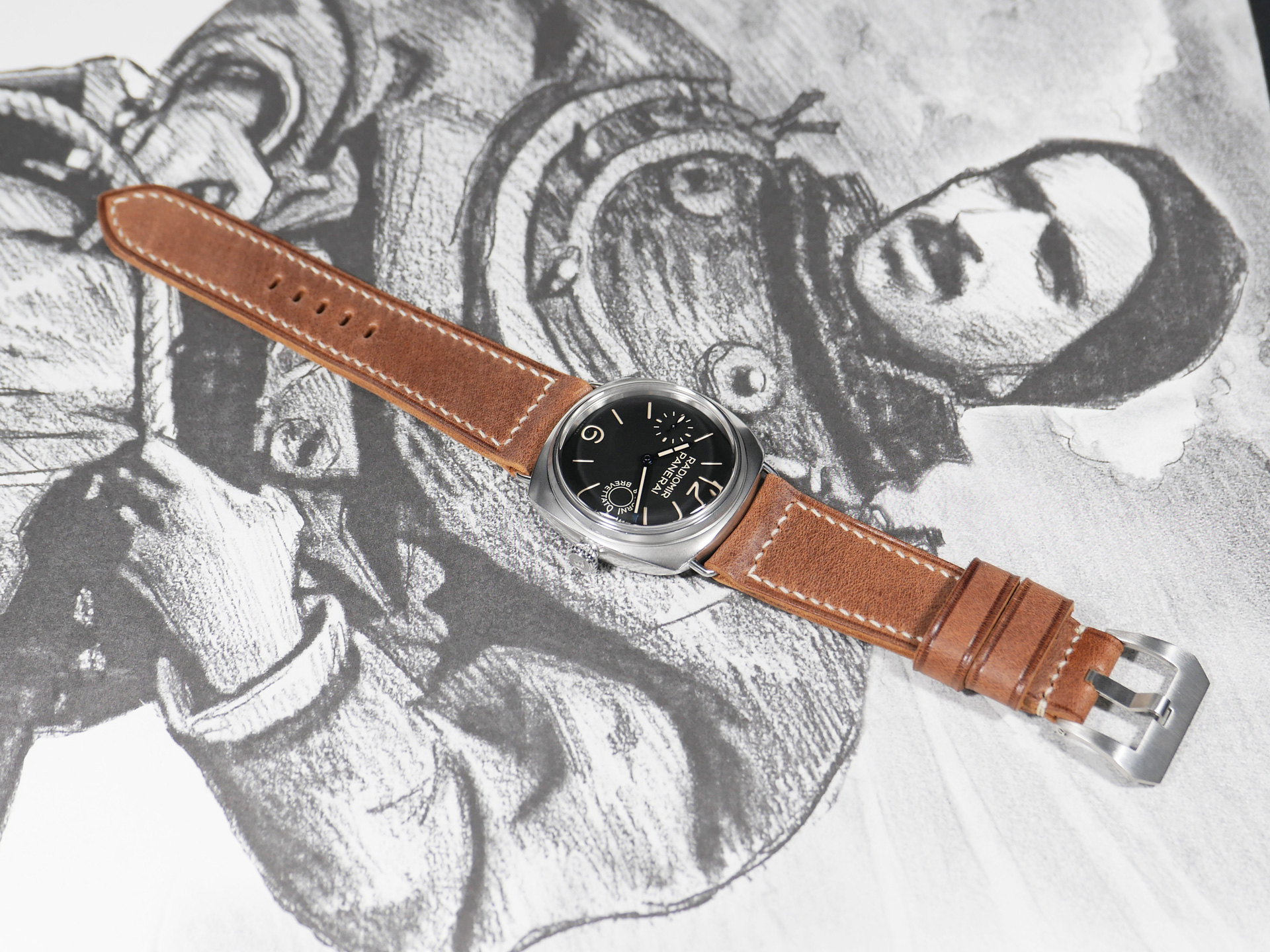 Pictured here on the Panerai Radiomir 8 Days PAM000992, this unique clay brown Radiomir strap complements all dial colors and case materials with its neutral, versatile tone.
