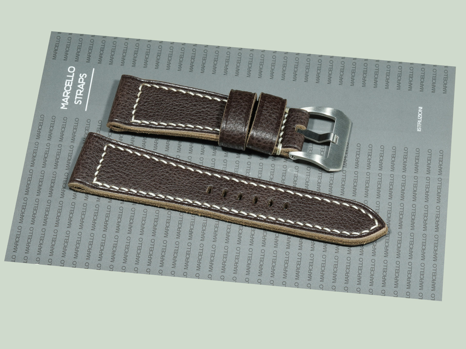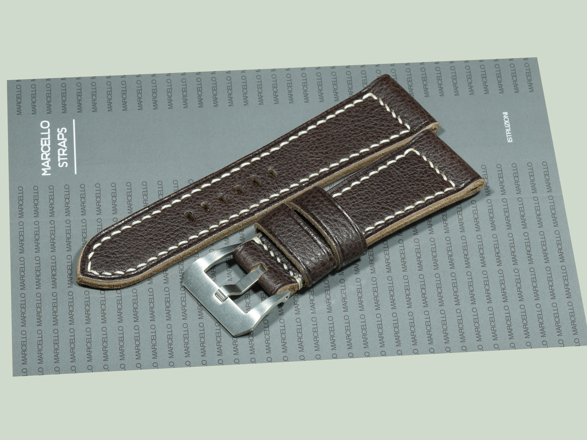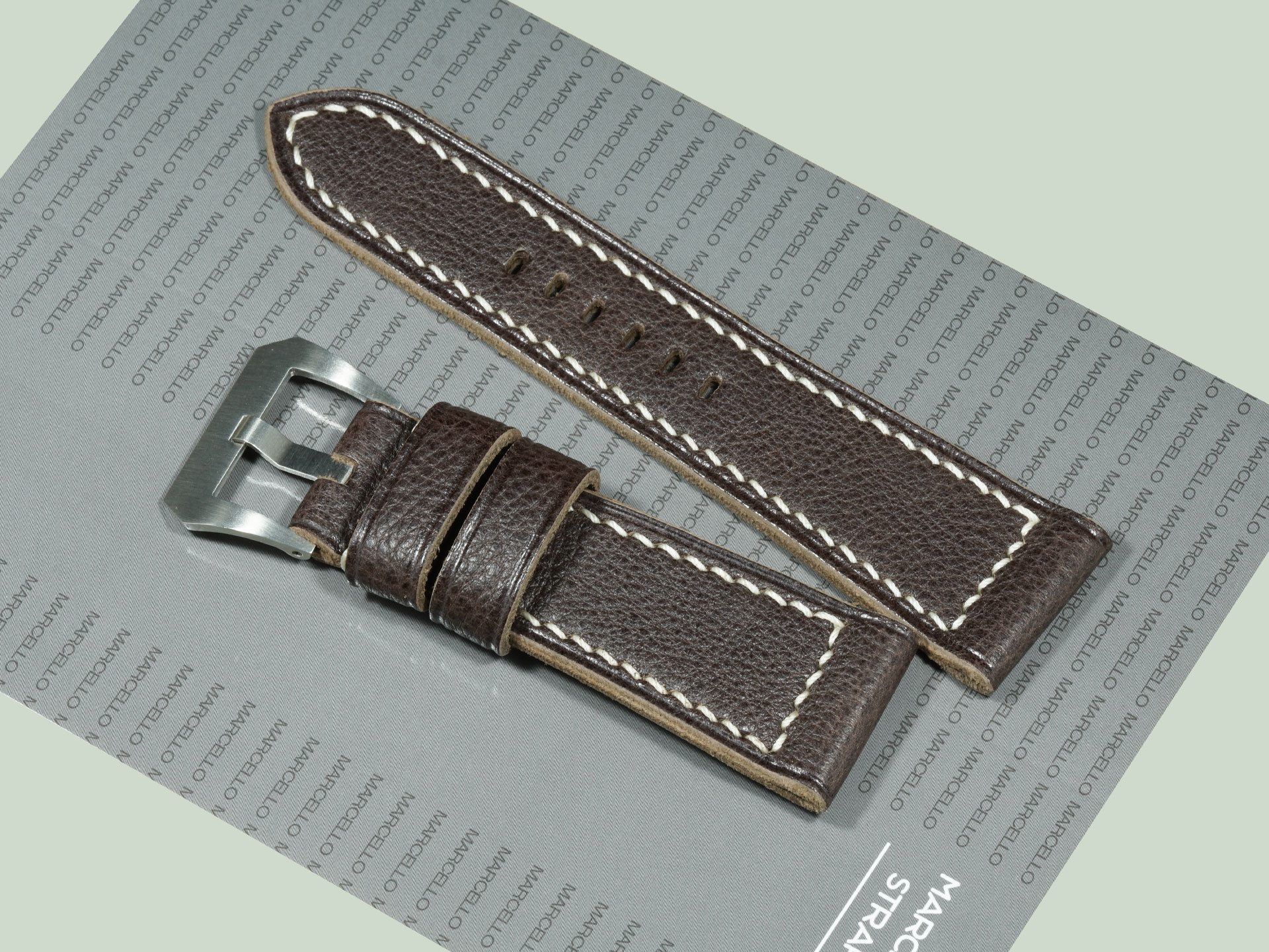 About the Leather: For this Radiomir project, I selected a deep espresso brown hide with a textured, natural surface. The leather has a soft temper, giving comfort on the wrist while maintaining the strength expected of a Panerai strap. This espresso brown Panerai Radiomir strap is fully handcrafted from start to finish, with careful attention to every detail.