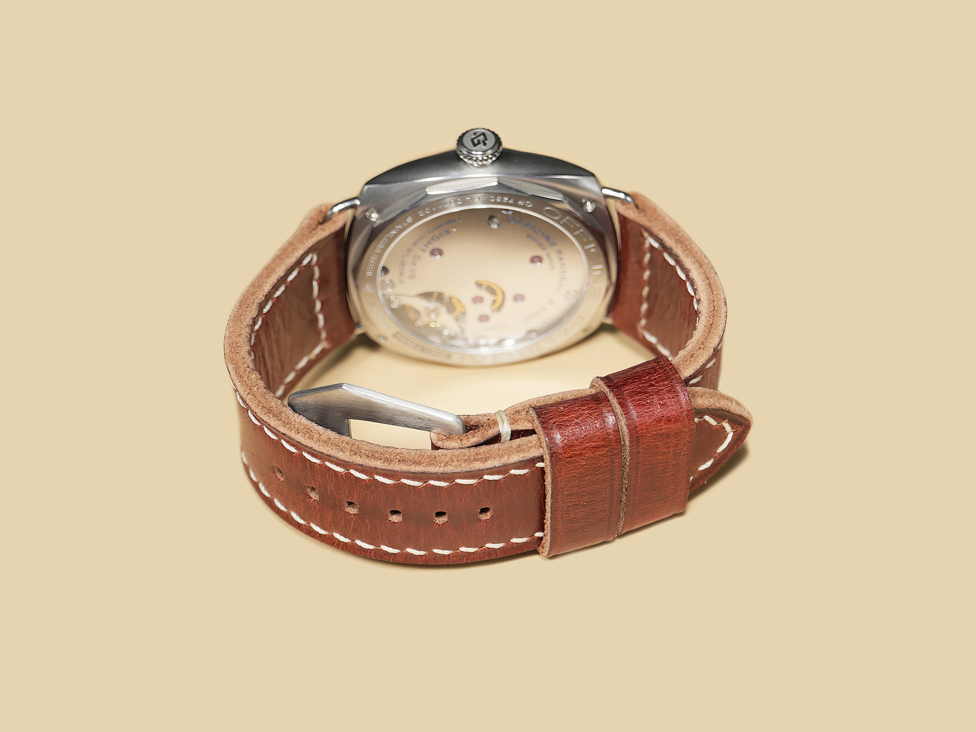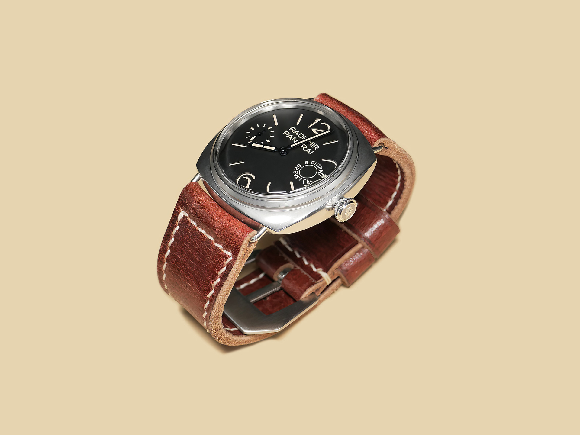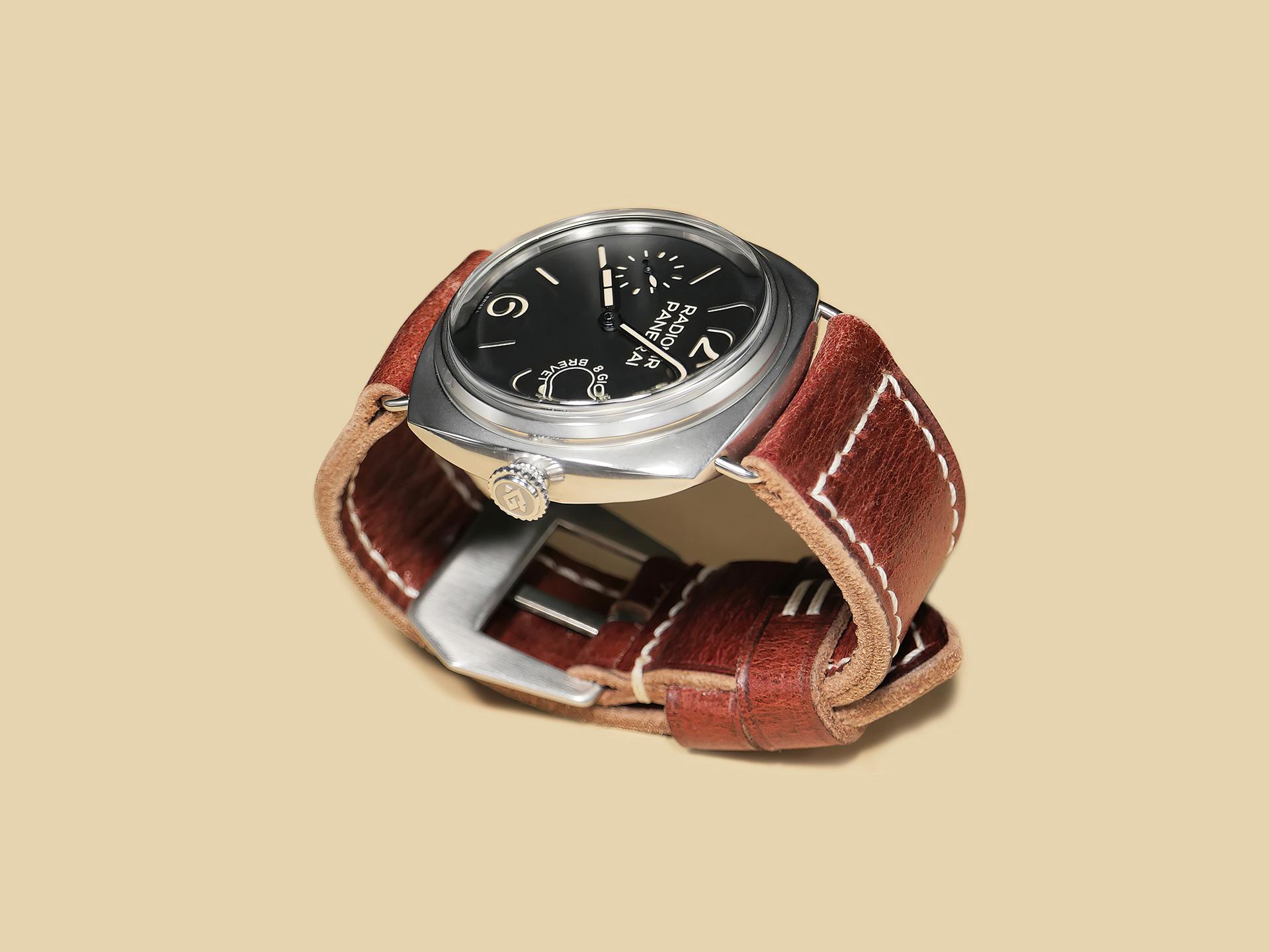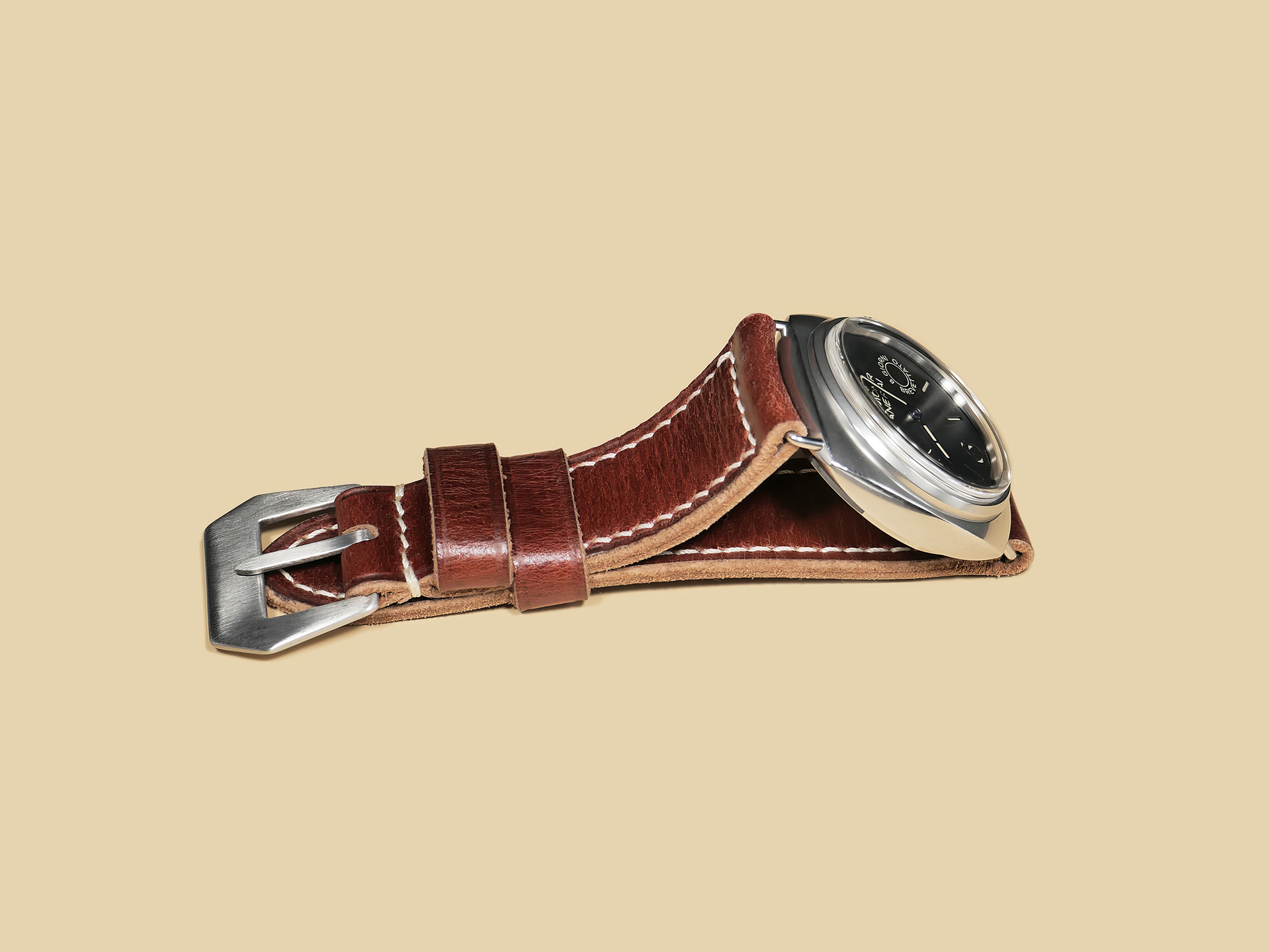 Due to the wire lugs of the typical Panerai Radiomir case, I tend to lean towards leathers of a slightly softer and more pliable temper. From a design perspective, I tend to utilize a taper of 27-22 or 26-22 depending on the leather. If you have a larger 47mm Radiomir case, like a PAM323, I highly recommend going with straps of 4.5mm thickness or above. I have even designed some custom aftermarket Radiomir straps specifically for the 47mm Radiomir cases that have a bolstered taper where the strap meets the case.
